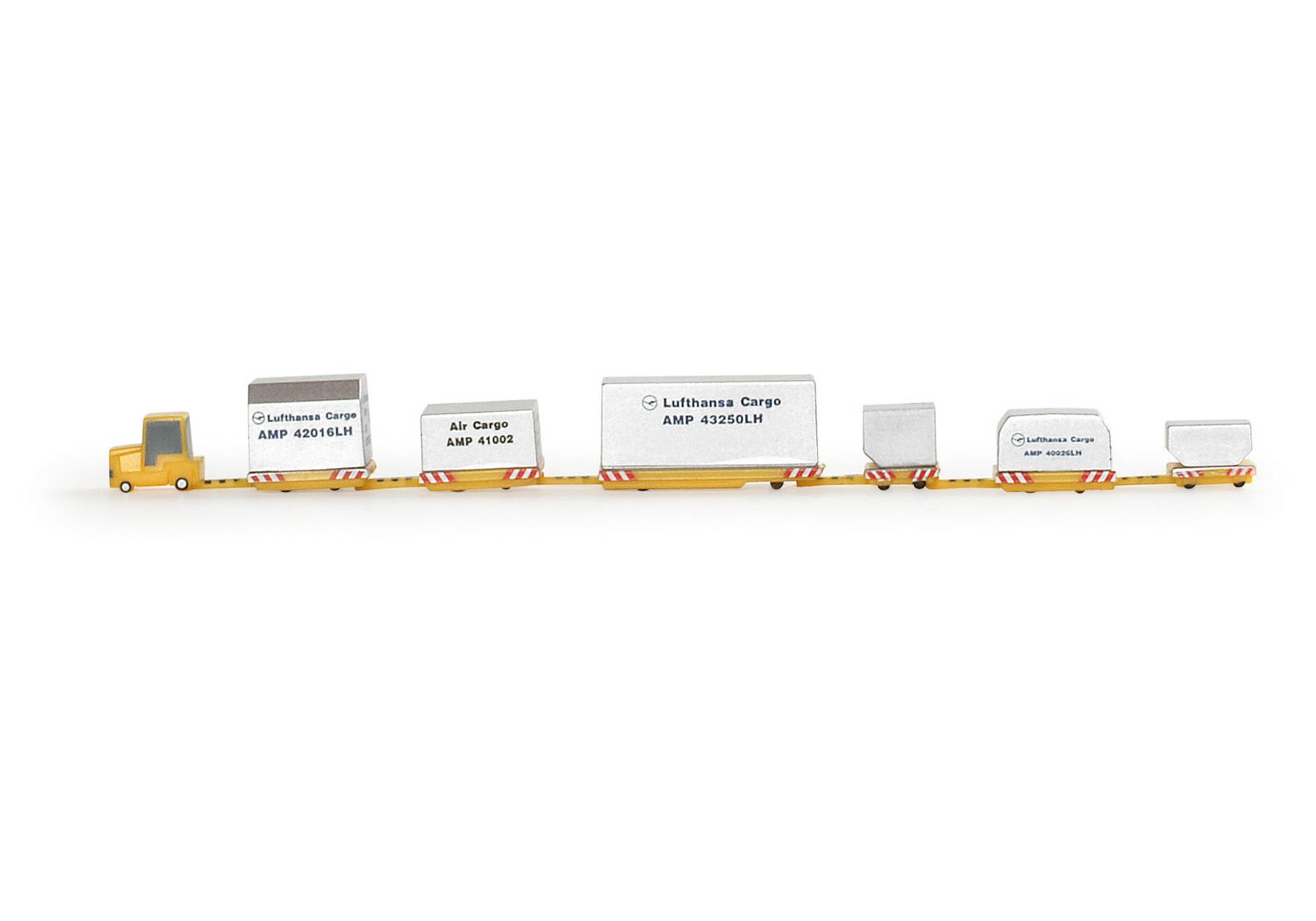 As in the 1/500 scale, the set “container vehicles” in the 1/400 scale alsofeatures two tractor trailers, each towing five containers as well as fivetrailers of various sizes.
