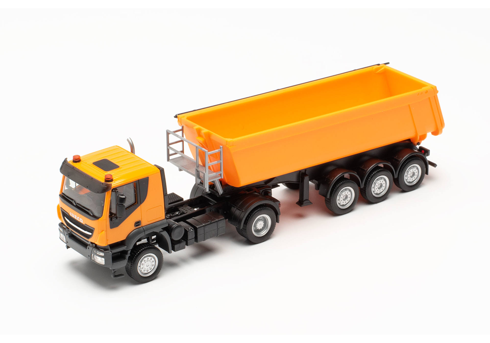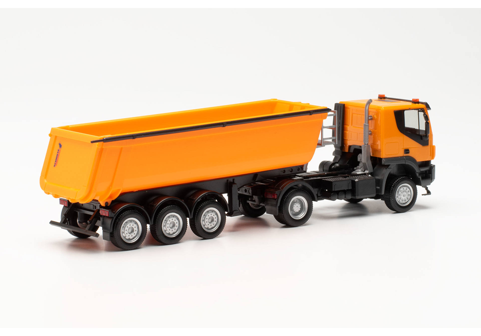 Iveco Trakker Schmitz Cargobull tipper semitrailer truck with steel body, municipal orange