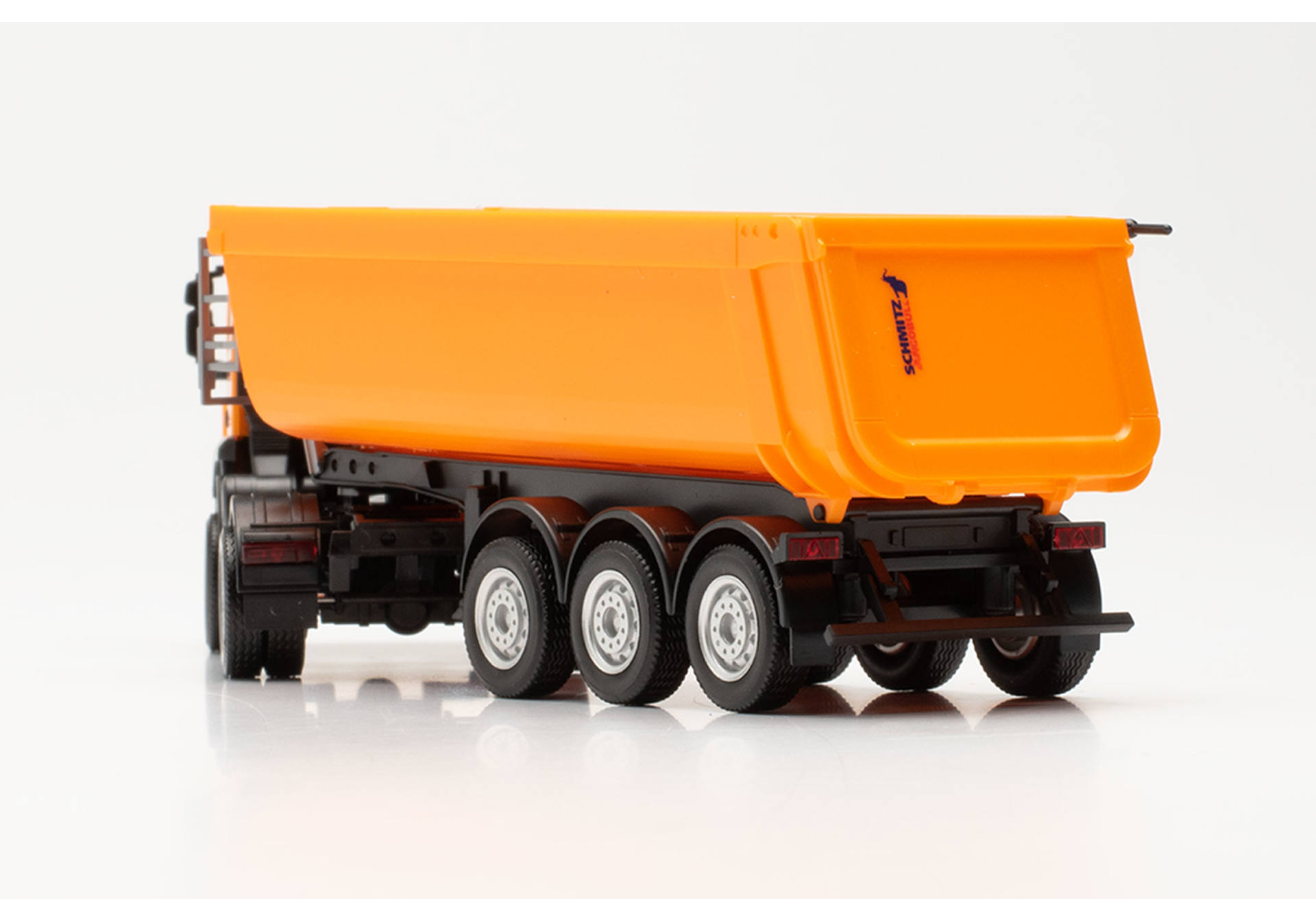 New type! The new Schmitz Cargobull dump semitrailer with a steel trough now complements the range of construction vehicles in municipal orange. The semitrailer is printed with the Schmitz Cargobull logo on three sides.