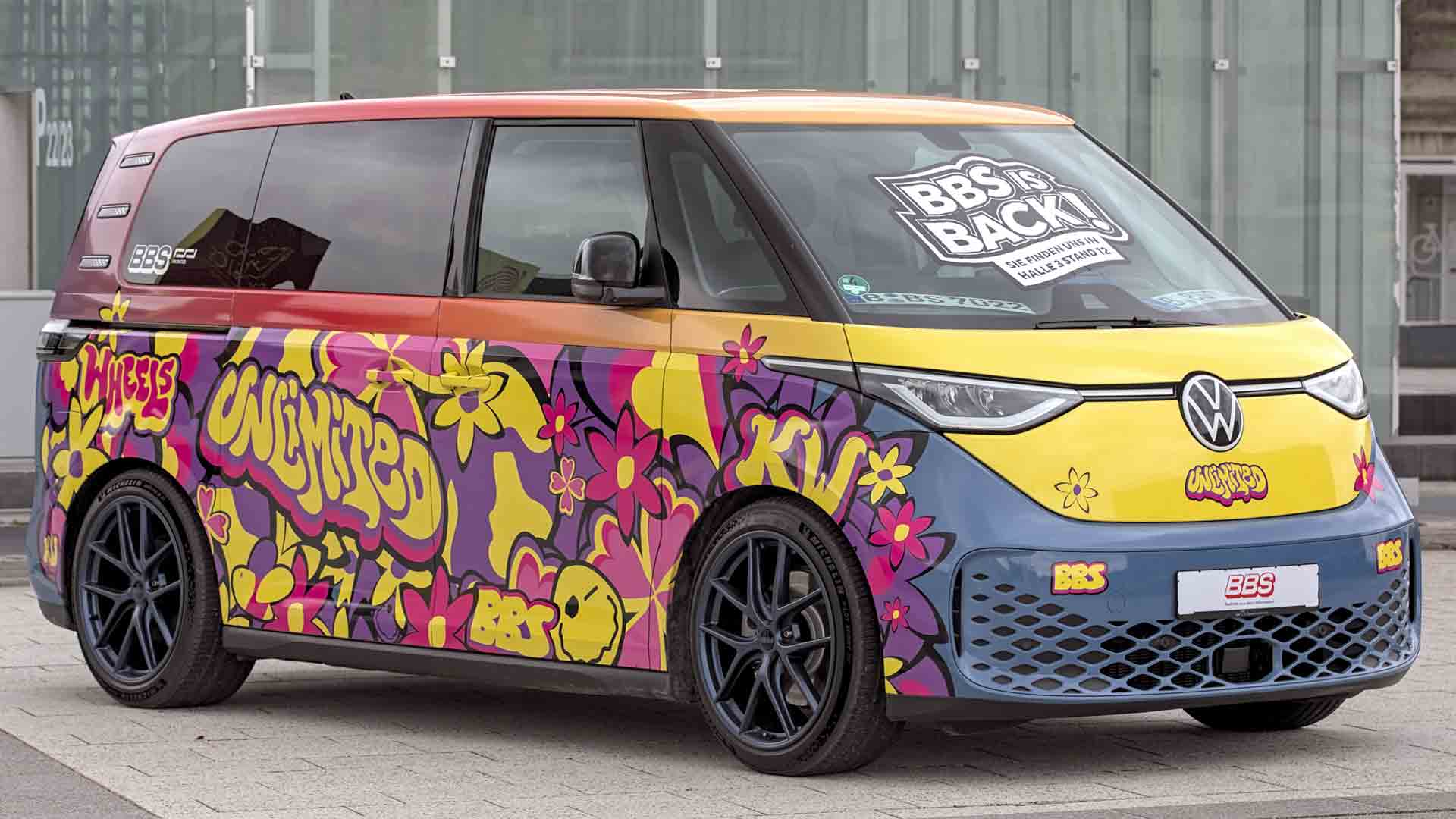 Even more flowery and colorful: The wheel manufacturer BBS has occasionally had to file for bankruptcy in its 54-year history, most recently in the fall of last year. The latest owner comes from Ratingen and is backed by a Turkish holding company. To mark this new start, an ID. Buzz was decorated accordingly and given the slogan "BBS is back!". Seen at Retro Classics in Stuttgart. Photo: Alexander Migl