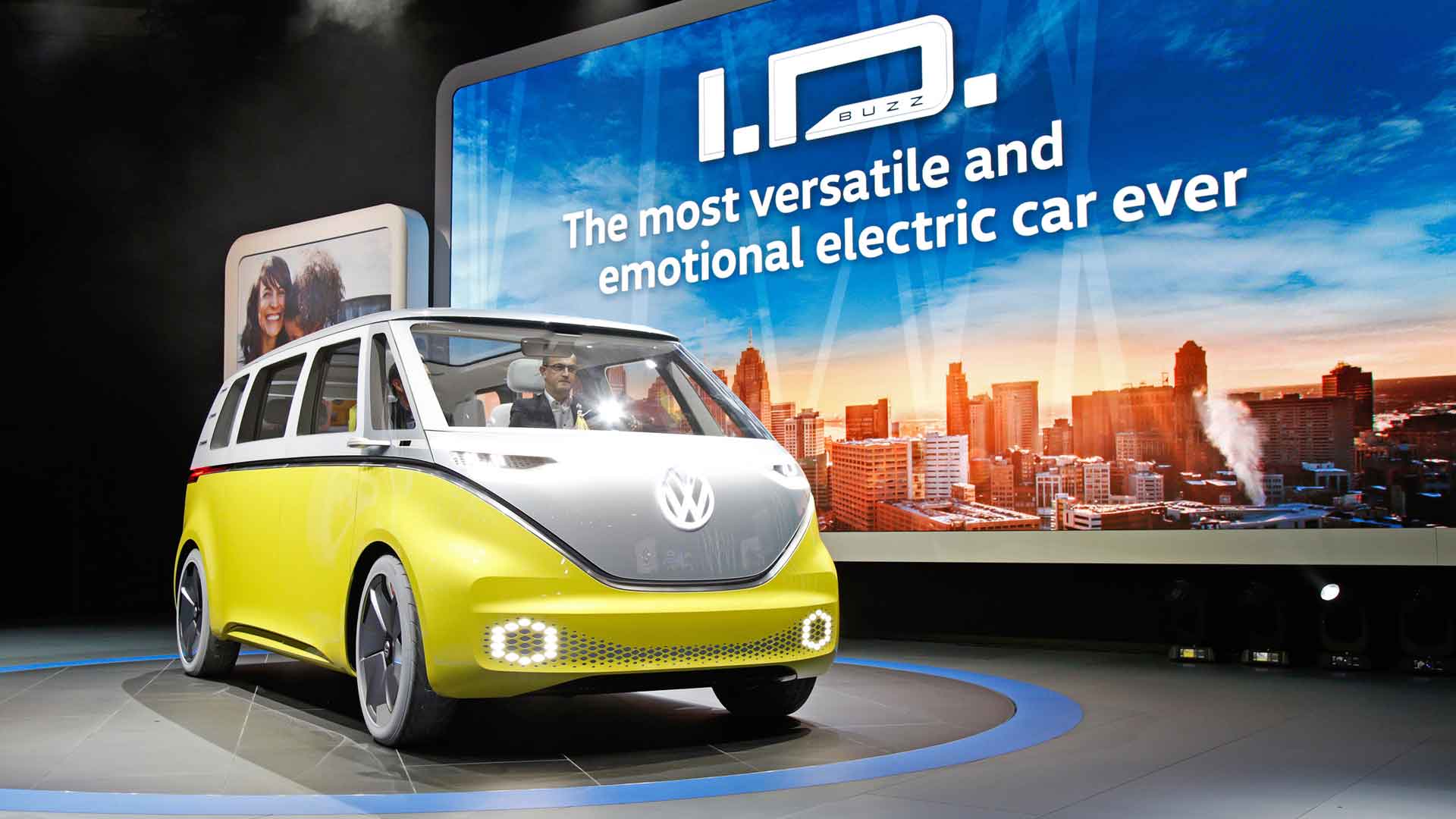 The ID. Buzz, which is set to go into series production. Scene from the VW press conference at the 2017 NAIAS in New York. Photo: VW