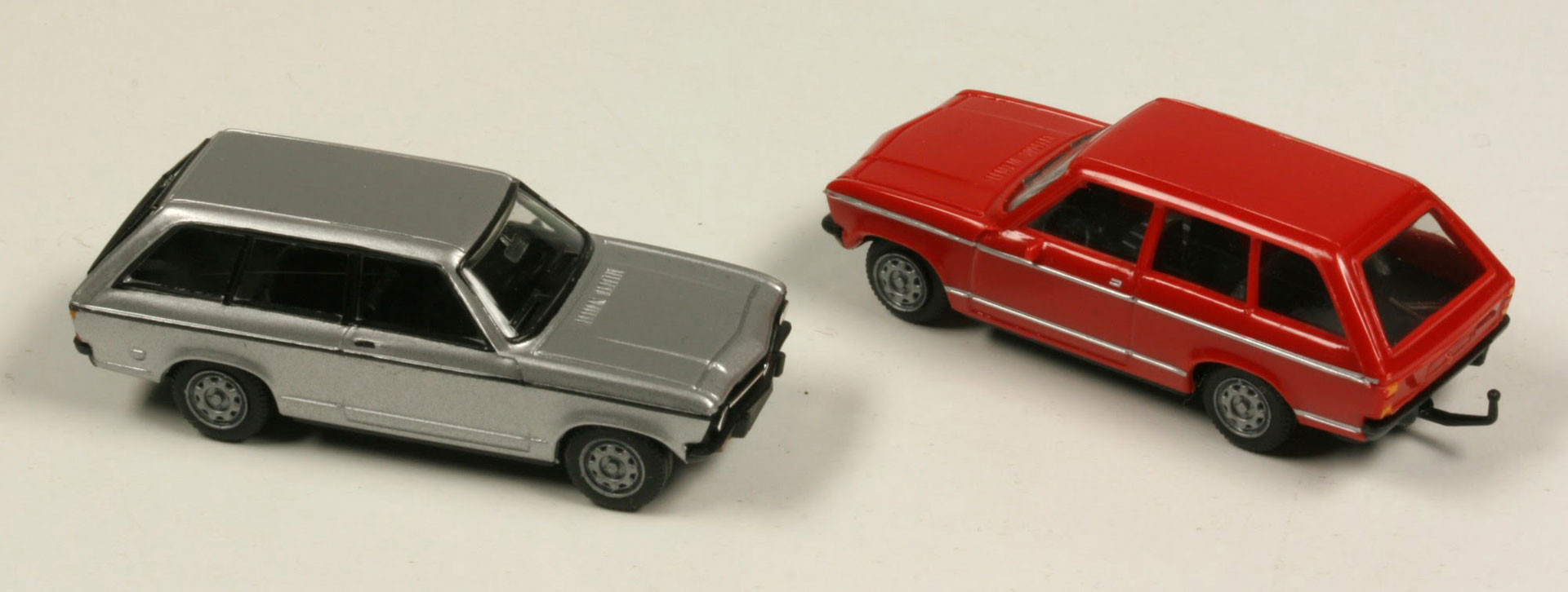 In 1994, the Ascona Voyage is released twice as a Herpa re-edition: the red one with its trailer hitch has to work hard, while the silver one enjoys the metallic paint and represents the “Series 70”.