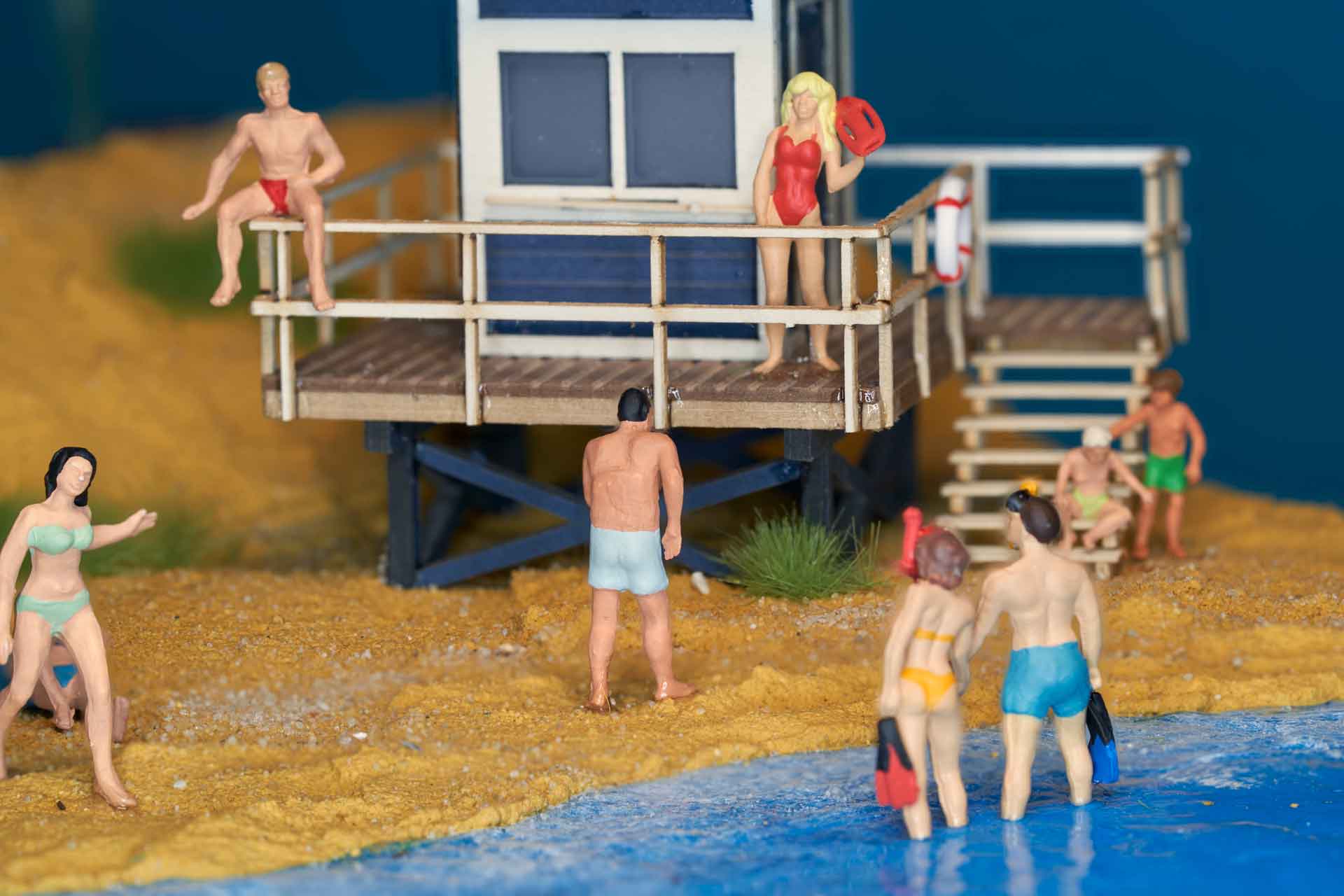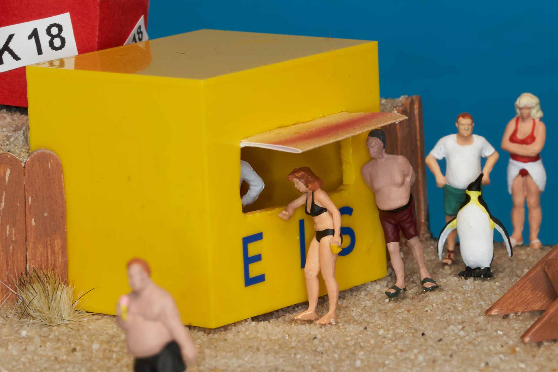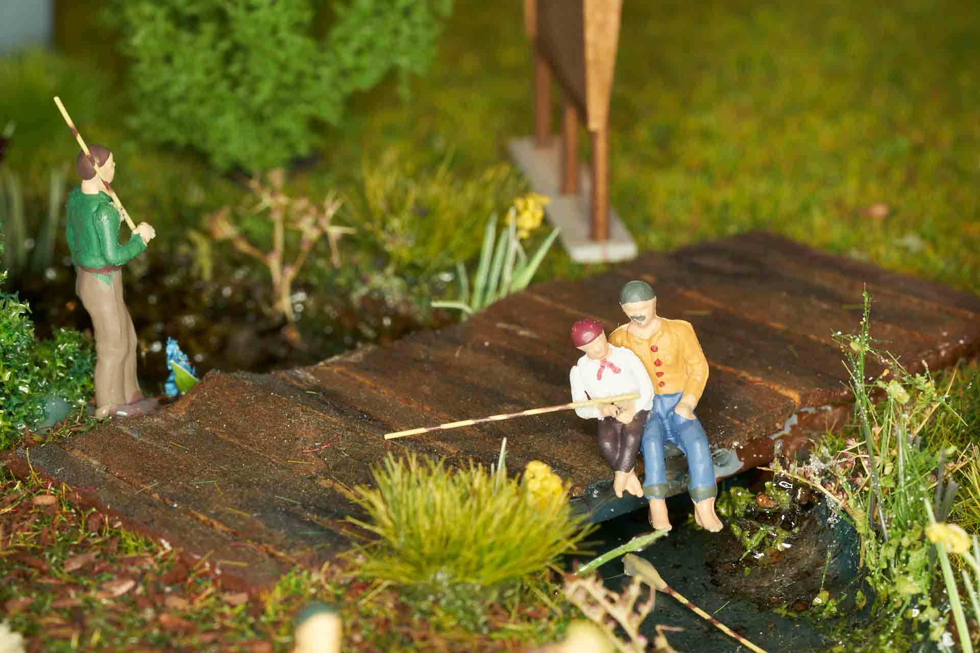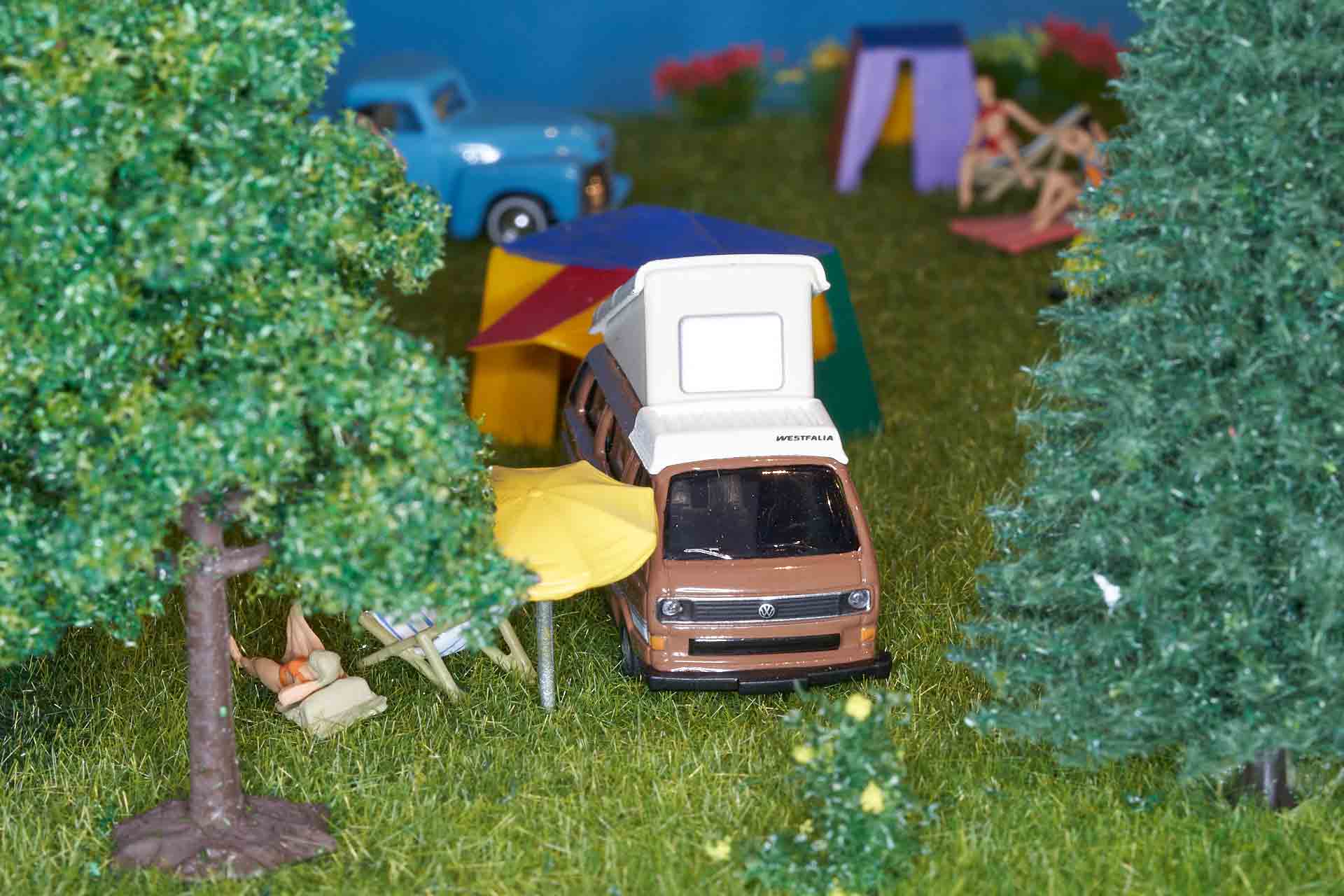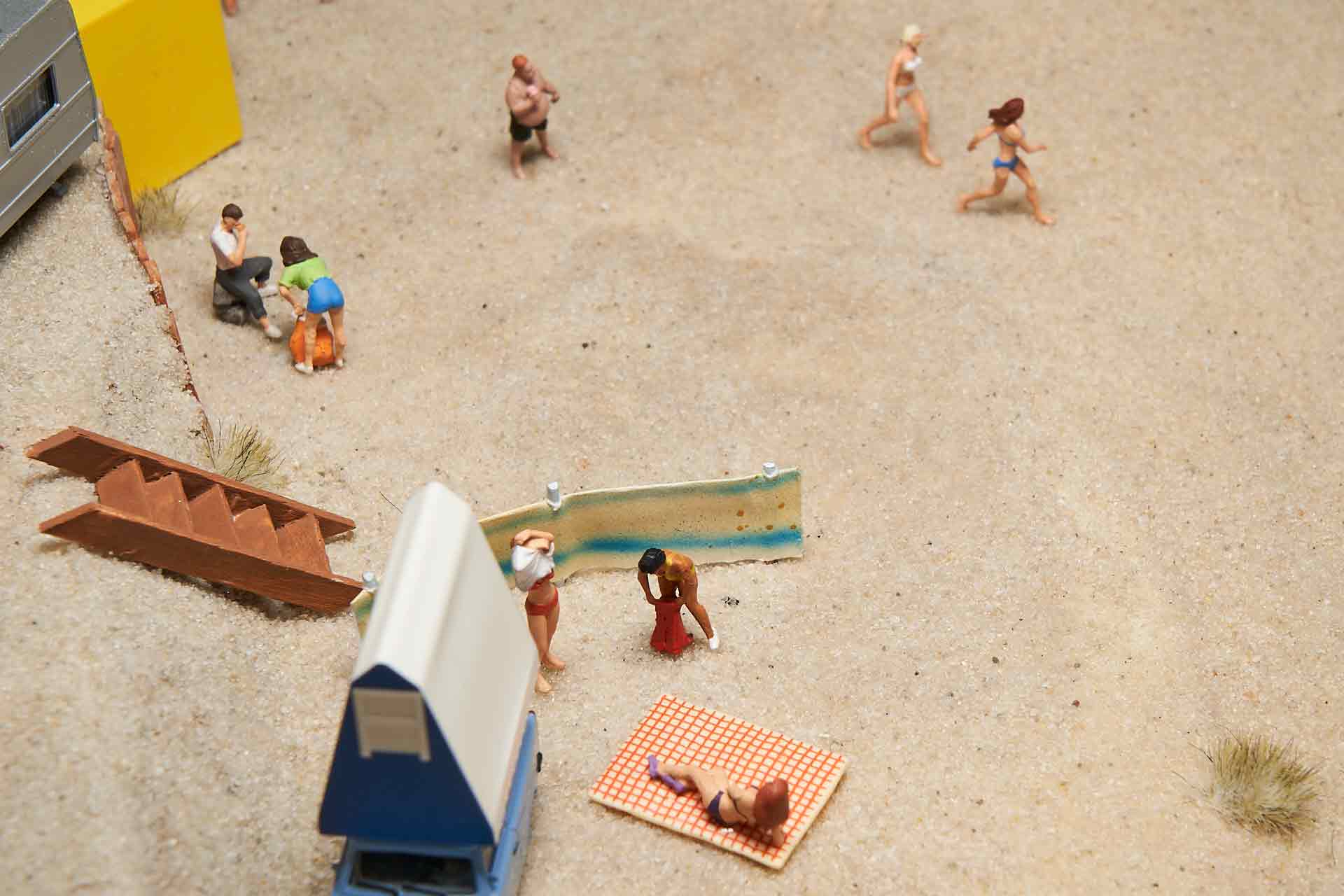 Each participant had their own vision of a camping scene, meaning there were very different and interesting details to find: from an ice cream van to a snack bar with bar tables, a sandpit for the children, a brick barbecue area, and a shower block, it was a broad overview. But there were usually campers to be seen barbecuing right next to their motorhomes or caravans and getting together in a cozy atmosphere. Have fun studying the pictures and discovering the many details.