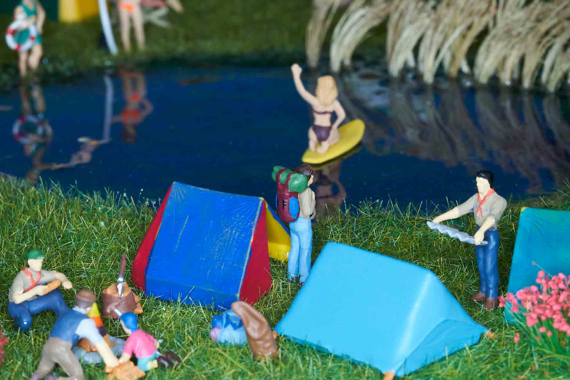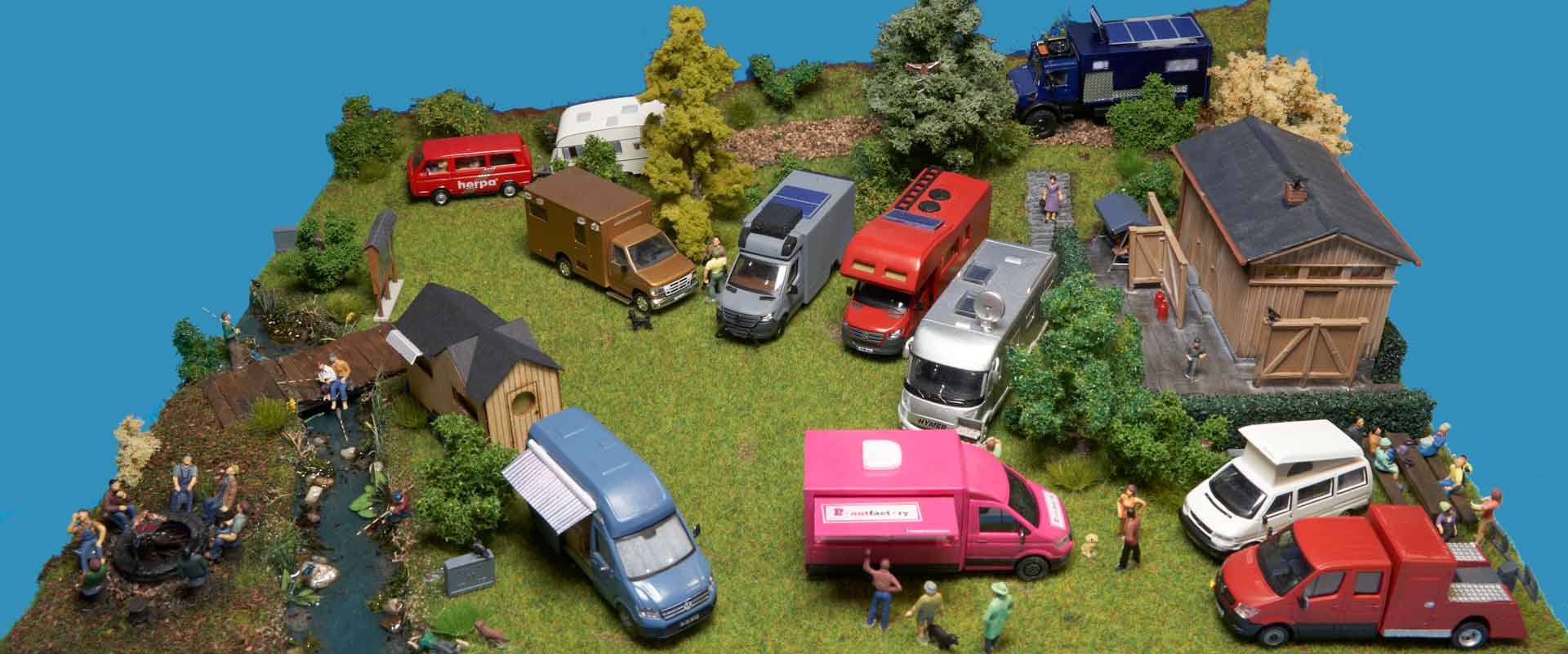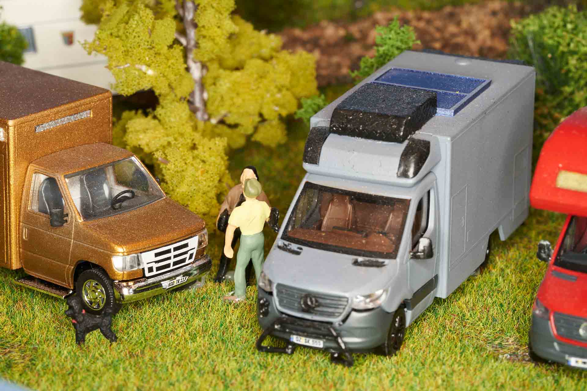 On the dioramas, simple camping tents, somewhat larger house tents, or roof tents attached to vehicles were positioned by rivers and streams, on a small lake or near the beach. Caravans of different sizes, with or without annexes - even one with a torn awning - were parked in various spots. The top dogs on the campsite, however, are invariably the motorhomes, which appeared in different configurations. From normal camper vans and motorhomes from specialist dealers, to off-road conversions of commercial vehicles, everything was on show here.