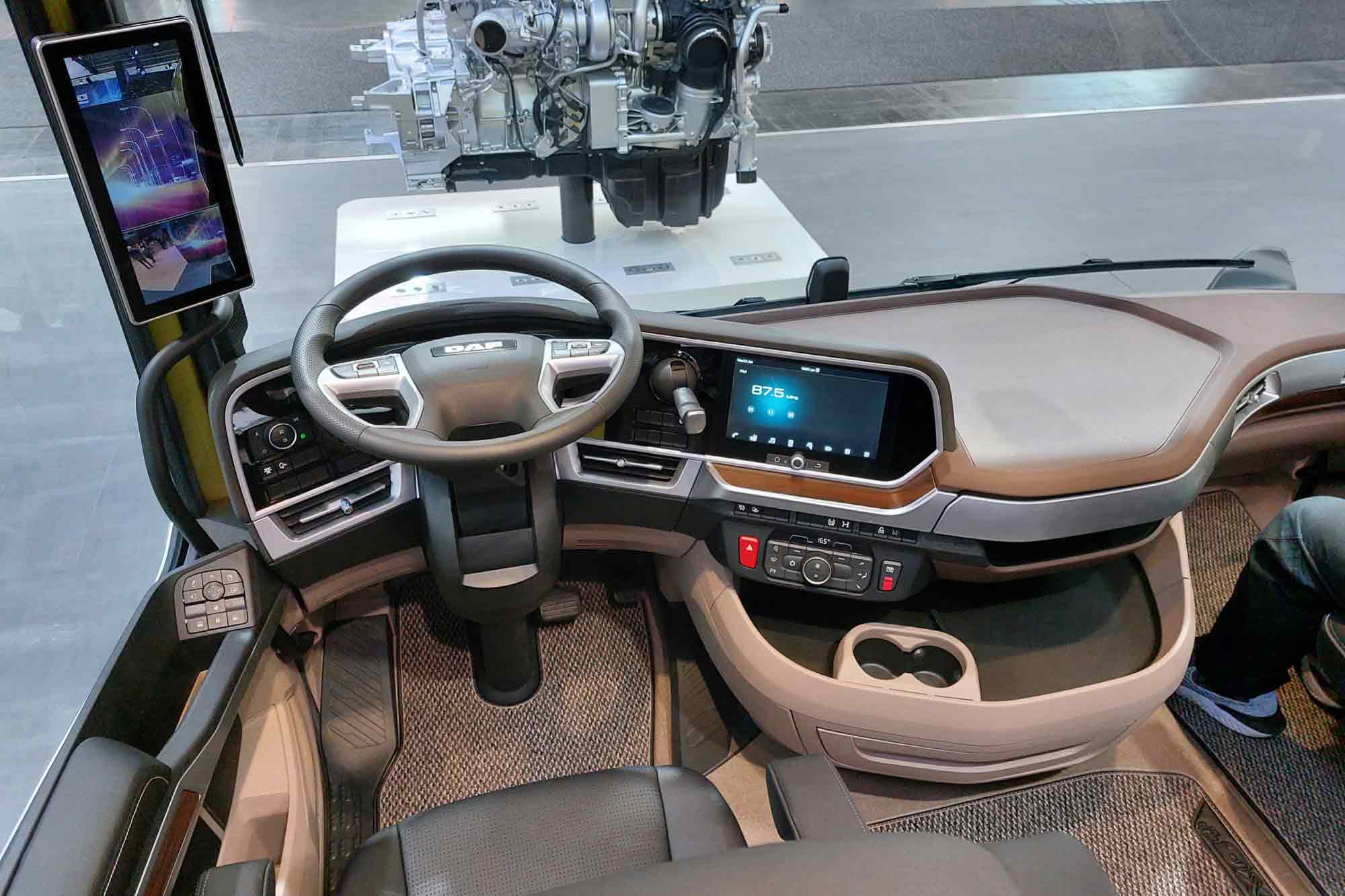 Thanks to efficient aerodynamics with cameras, the new vehicles are said to save up to 6% fuel, and produce significantly less wind noise. New components and reduced engine weights save a further 3% diesel, and in total, DAF puts the potential at an impressive 10%. Propulsion is provided by the revised engines MX11 with 10.8 l and MX13 with 12.9 l displacement from Paccar. Compared to the previous series, torque increases in all engines, even if the unchanged horsepower figures do not indicate this. Things come to an