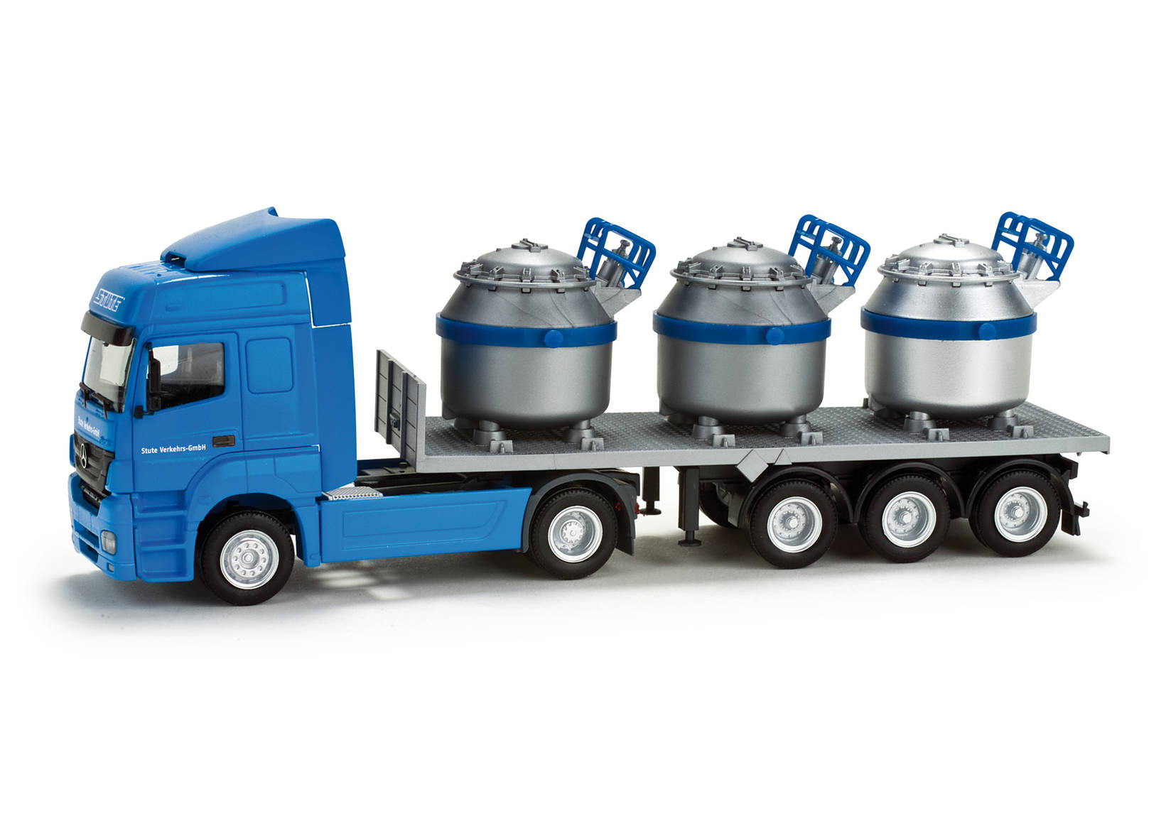 The Stute Verkehrs GmbH with headquarters in Bremen operates the current Mercedes-Benz Axorto transport liquid aluminum. The short trailer is loaded with three containers
