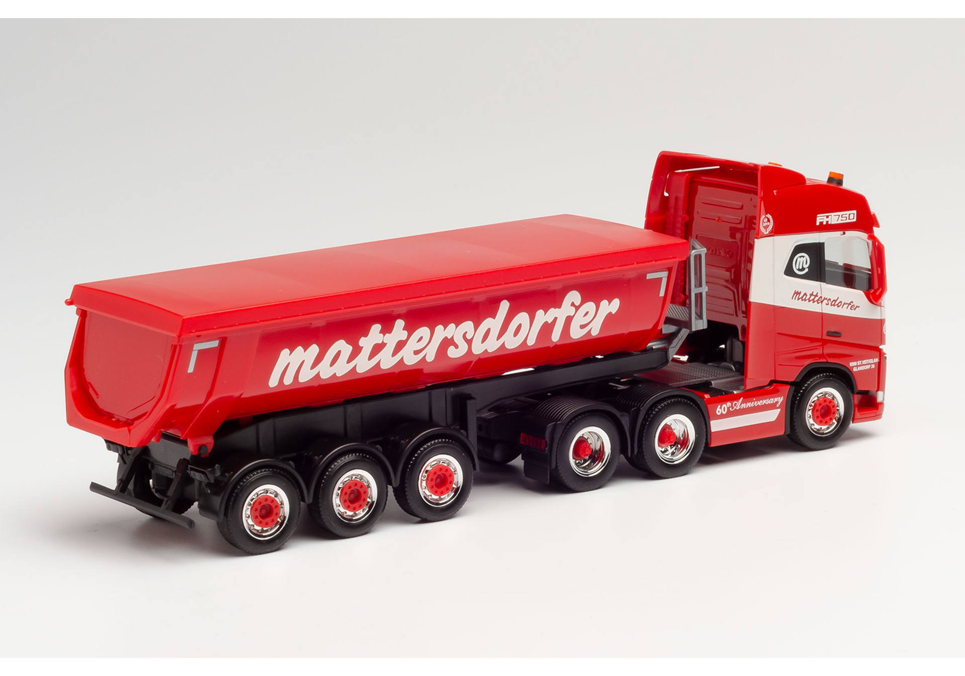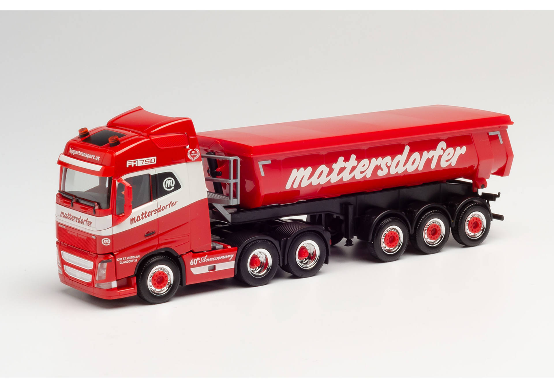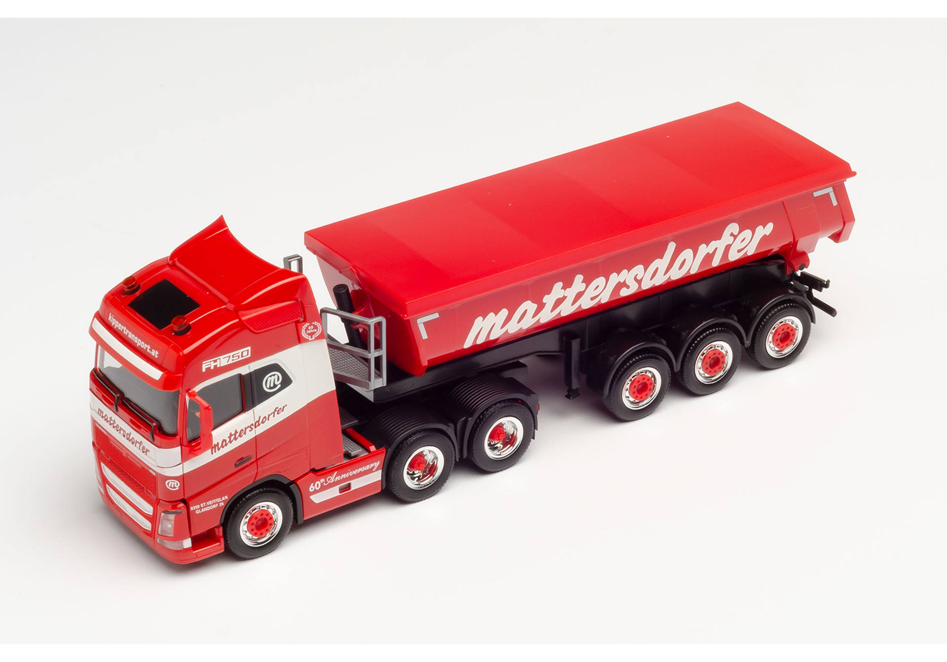 311908 Volvo FH Gl. thermal insulation trough semitrailer MattersdorferThe transport company Mattersdorfer, which is based in Austria, operates not only silo combinations, but also tractors with thermal insulation trailers. With this model, a three-axle Volvo FH tractor unit pulls the trailer covered with a tarpaulin.
