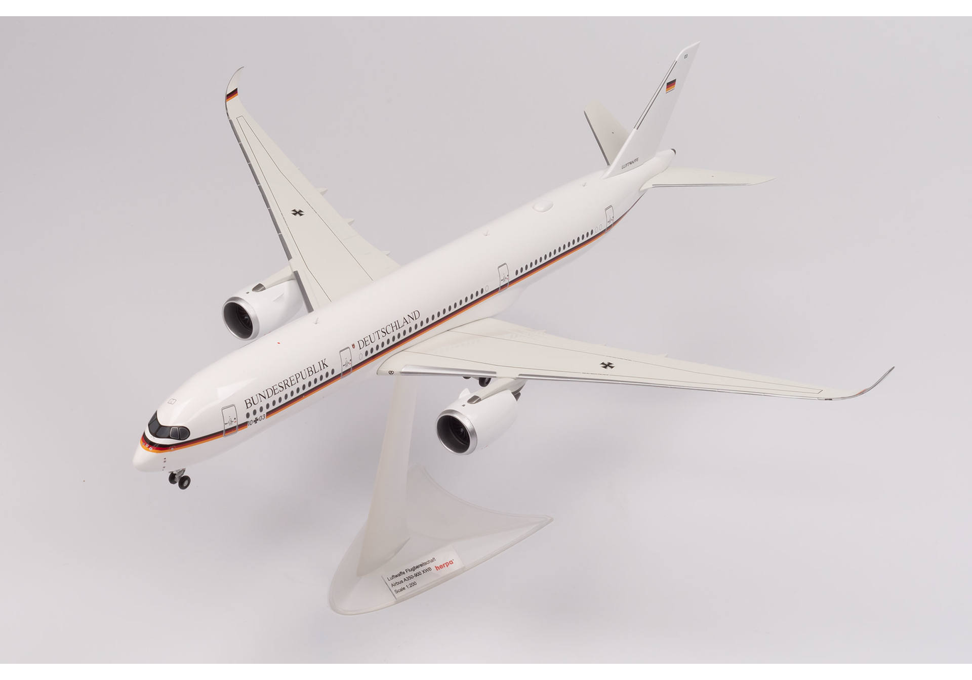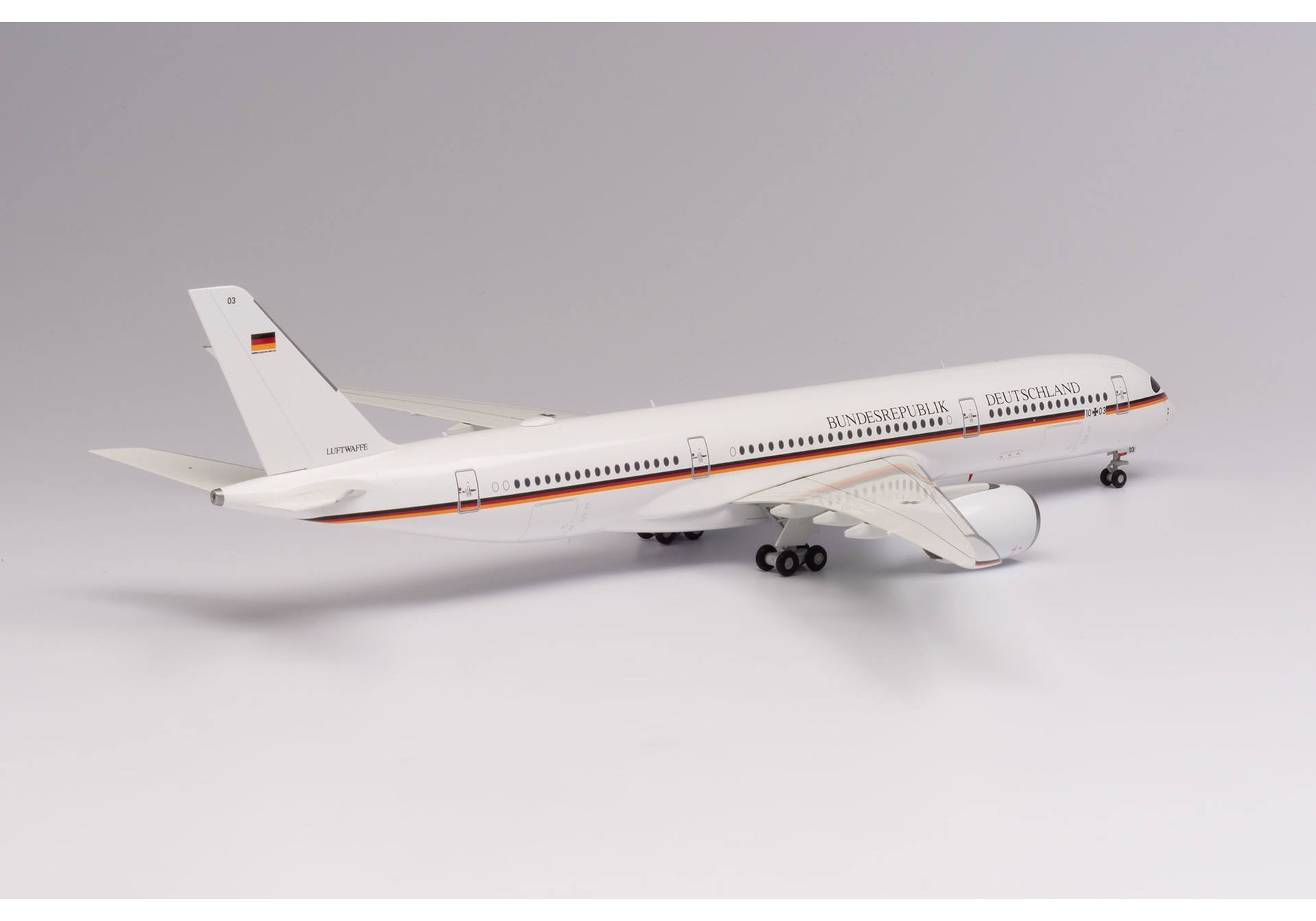 Insgesamt drei Airbus A350-900 werden die in die Schlagzeilen geratene Langstreckenflotte der Regierungsflieger von Grund auf modernisieren. Im April 2020 wurde 10+03 an Lufthansa Technik in Hamburg übergeben, wo sie mit Konferenzzimmer, Büroräume, militärische Funkanlagen und Raketenabwehrsystemen ausgerüstet wird. Im Sommer 2020 soll dieses erste Exemplar an die Flugbereitschaft der Bundeswehr übergeben werden.