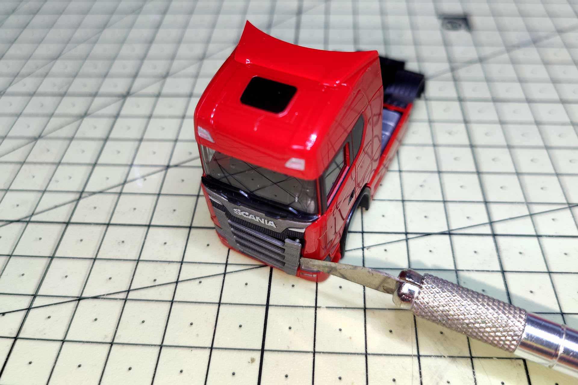 Immer mehr Umbauer verfeinern Serienmodelle weiter. „Supern“ nennen sie diesen Prozess, bei dem viele Feinheiten herausgearbeitet werden. Für einen Showtruck ist die umgestaltete Fahrerkabine besonders wichtig. Nur, wie kommt man da ran? Frank Hadel zeigt, wie man ein Modell fachgerecht ohne Schaden zerlegt.