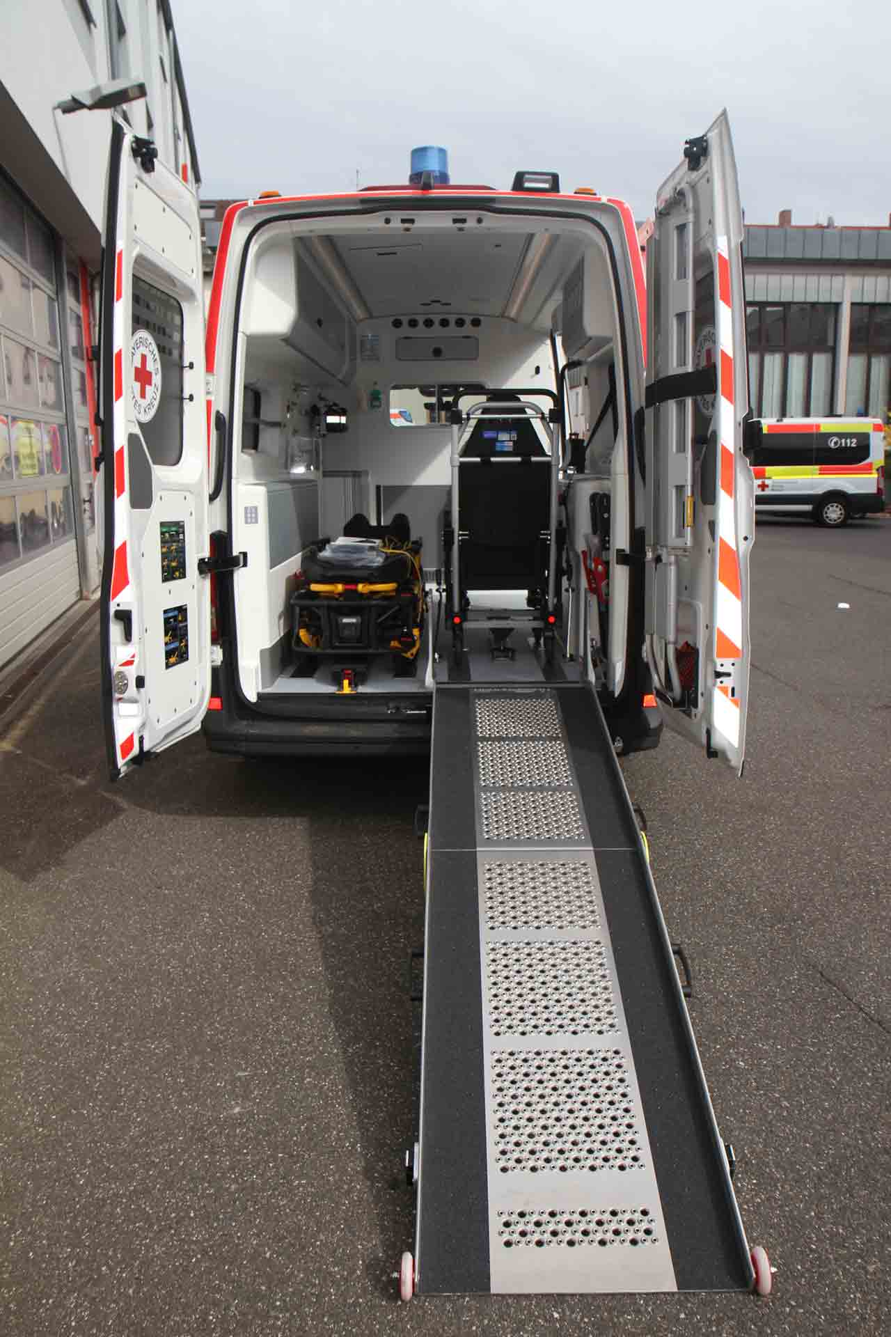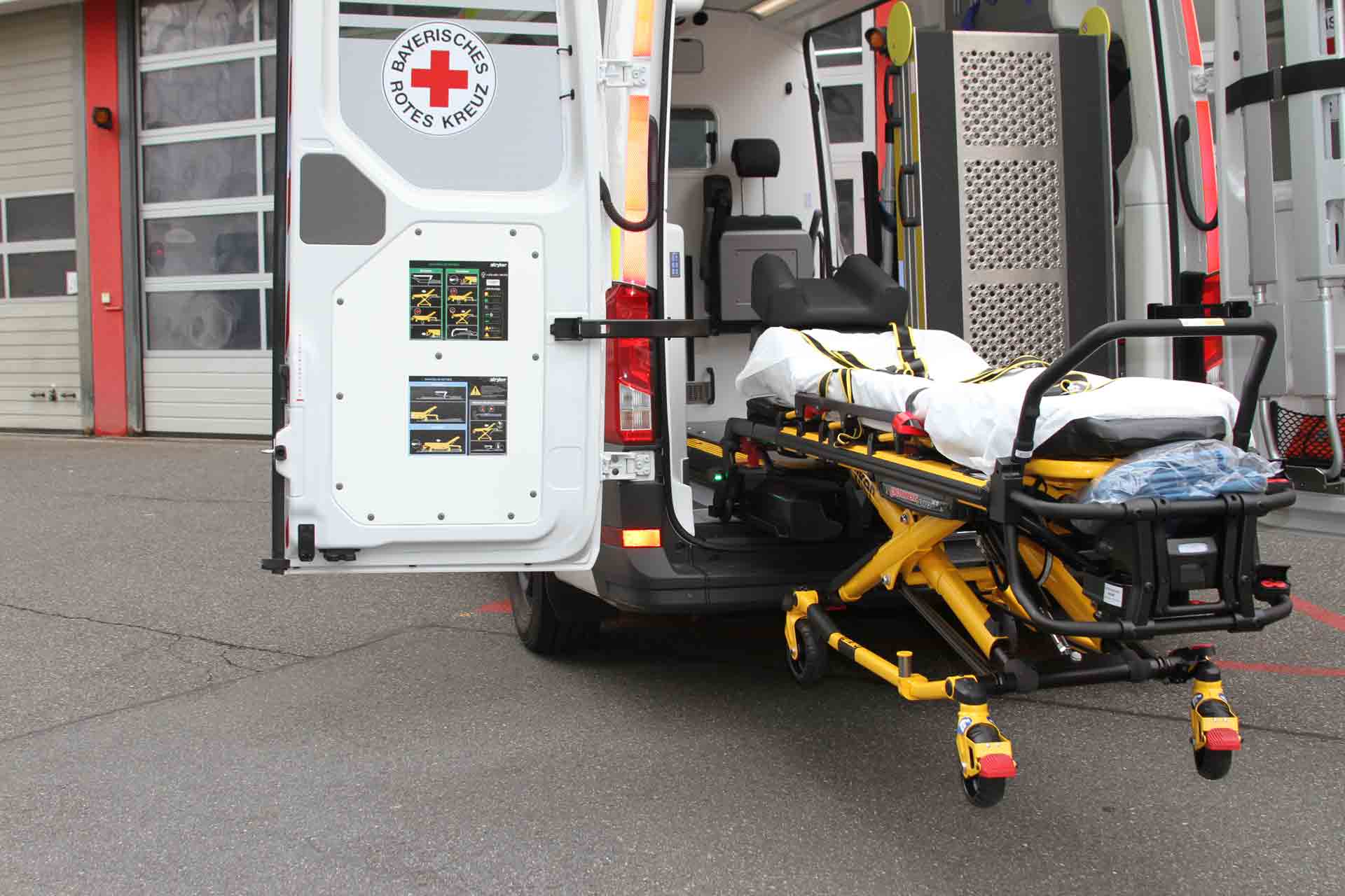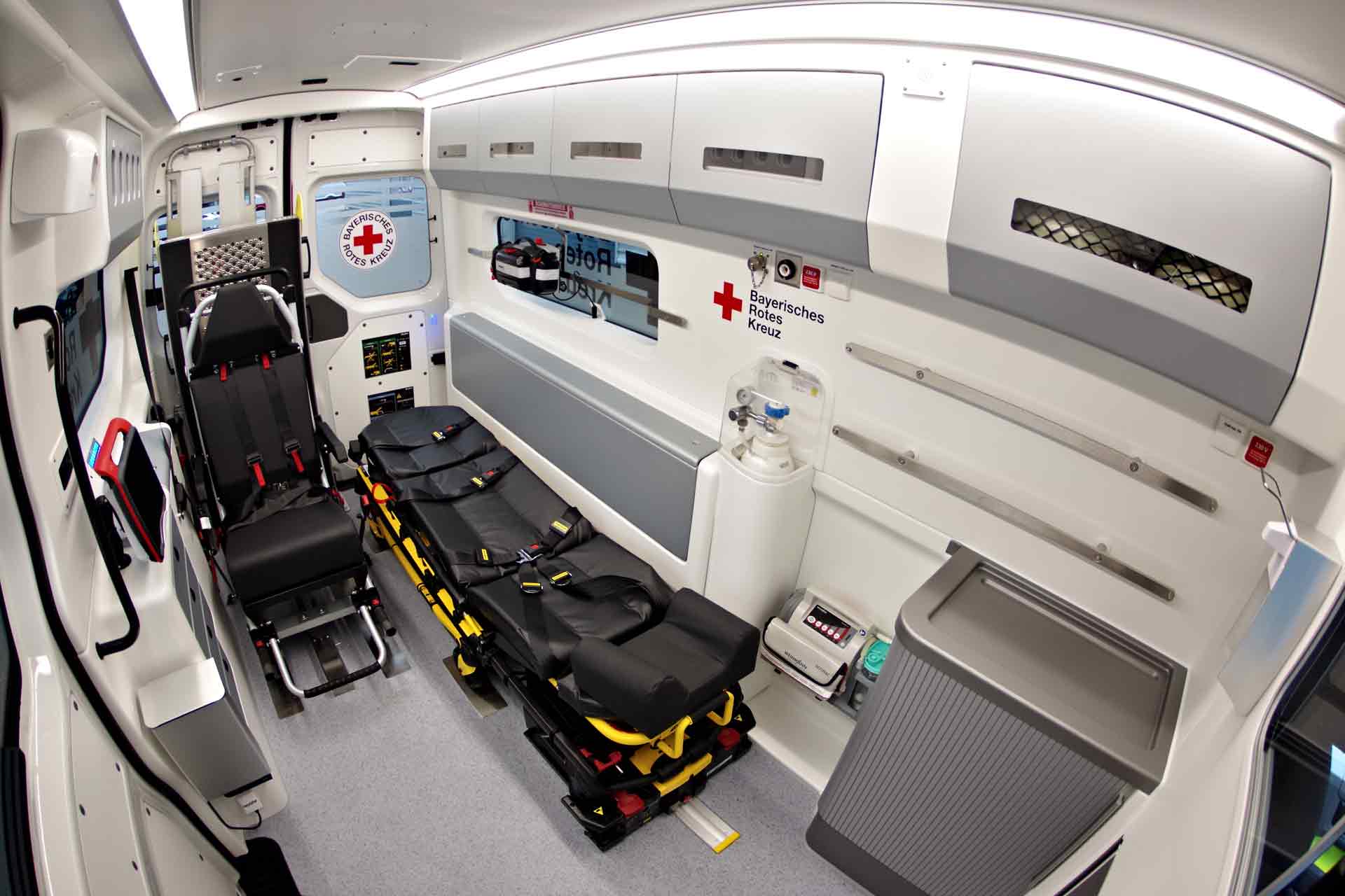 Obwohl die Fahrzeuge durchaus auch für die Erstversorgung von Notfalleinsätzen eingesetzt werden können und konzeptionell dafür ausgestattet sind, handelt es sich nicht um Notfallkrankenwagen. Alle KTW BY 2023 sind entsprechend den Normvorgaben für einen Typ A2 nach DIN EN 1789:2020 ausgerüstet – und führen darüber hinaus zusätzliches Equipment mit (Corpuls 1 EKG mit AED und Pulsoximetrie, Schaufeltrage, Vakuummatratze, Notfallrucksack, Sauerstofftasche etc.). Alle KTW BY 2023 sind mit kraftunterstützten Fahrtragen und Beladesystemen ausgestattet, auch die eingesetzten Tragsessel erhalten ein abnehmbares Antriebsmodul zur Entlastung der Einsatzkräfte und Verbesserung der Ergonomie.