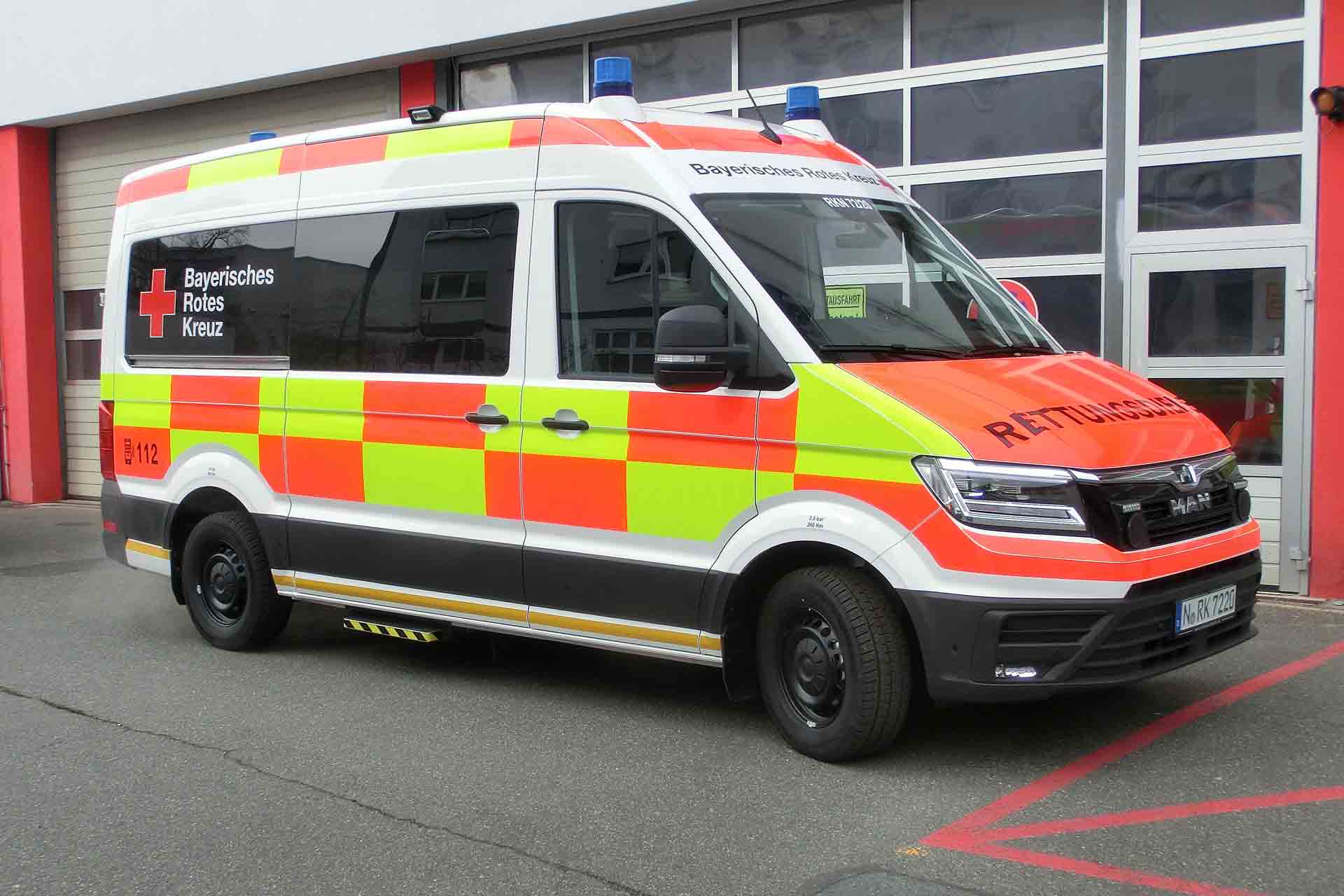 Damit fällt 2022 die Entscheidung, auch nicht zuletzt wegen dessen guter Verfügbarkeit, erstmals auf das Basisfahrzeug MAN TGE, nachdem zuvor seit 2010 alle Bayern-KTW auf Ford Transit-Basis aufgebaut werden. Weitere Aspekte für die Beschaffungsentscheidung waren neben wirtschaftlichen Gesichtspunkten das Platzangebot im Innenraum sowie die umfangreichen Assistenzsysteme und die auch für den Patientenraum nutzbare Heizungs- und Klimatisierungsanlage des Basisfahrzeugs.