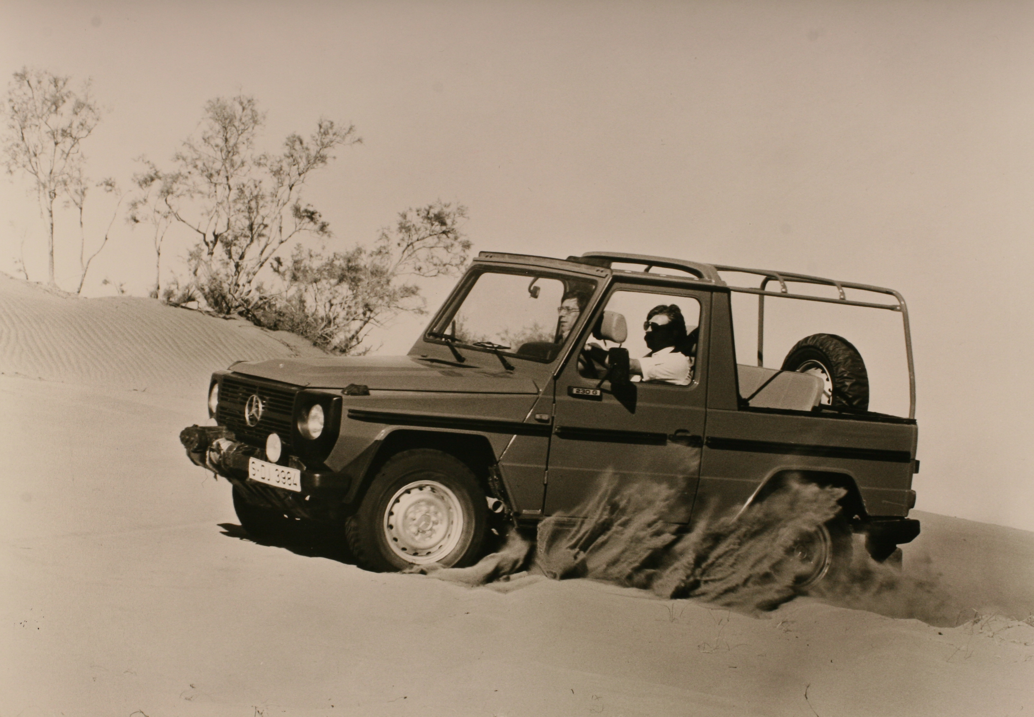 Aber in erster Linie hatte das technische Gründe. Nicht der Wunsch nach permanentem Allradantrieb war die eigentliche Ursache, sondern ein funktionsfähiges ABS. Dieses war auf damaligem technischen Stand nur mit permanentem Allradantrieb möglich. Und: Es sollte für den Geländeeinsatz unbedingt abschaltbar sein, automatisch, sobald die Differenzialsperren aktiviert werden. Das G-Modell, stets in Graz gebaut, wurde bis zum Jahr 2000 in Österreich, der Schweiz, dem Terrain des ehemaligen Jugoslawien und im Ostblock mit Puch-Label verkauft, in allen anderen Ländern mit dem Mercedes-Stern. Der Einfachheit halber sprechen wir vom Mercedes, ohne den Puch deshalb diskreditieren zu wollen.