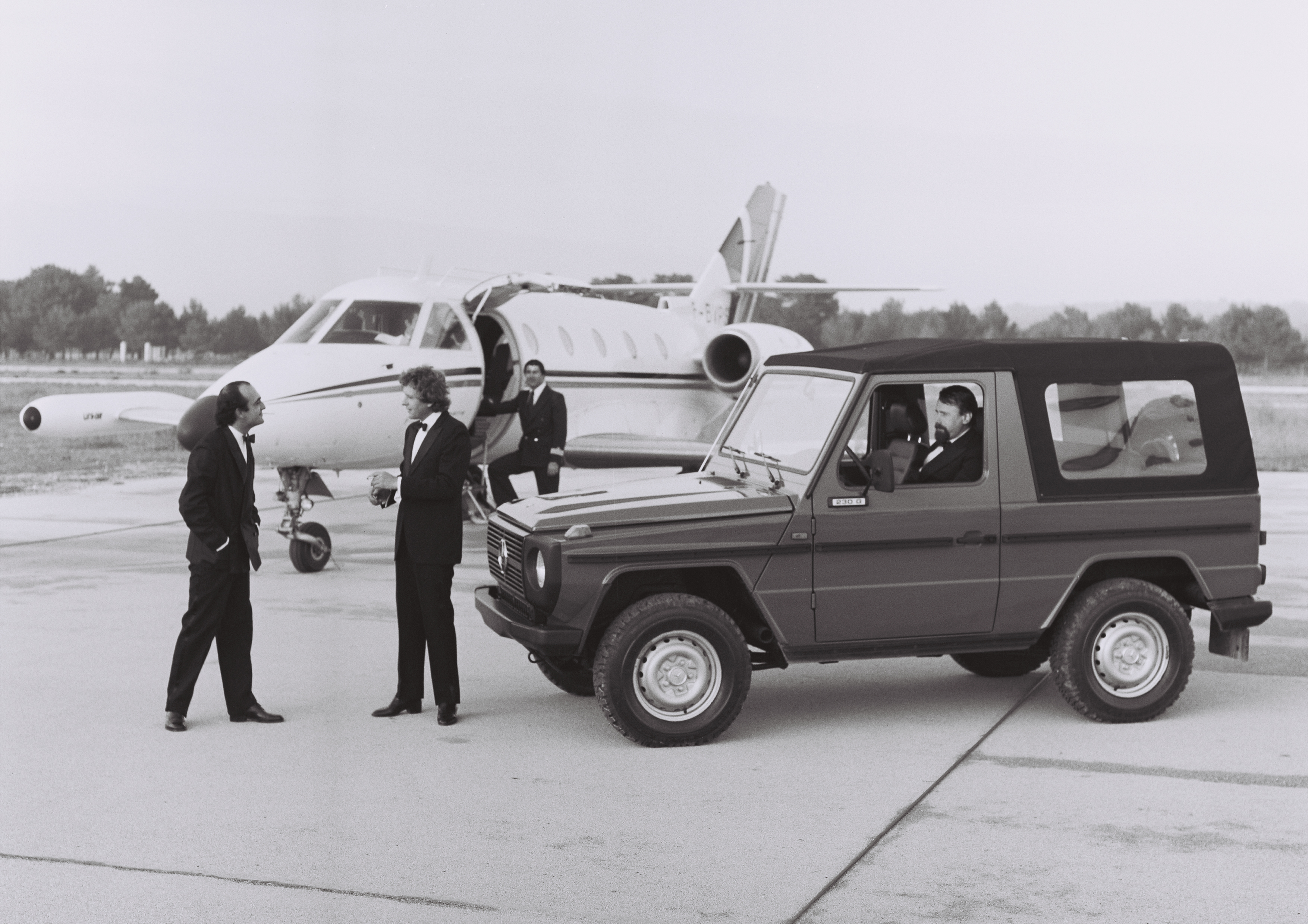 Aber der offene G war eher ein Worker als ein Freizeitwagen. 230 G auf dem Flugplatz-Rollfeld.