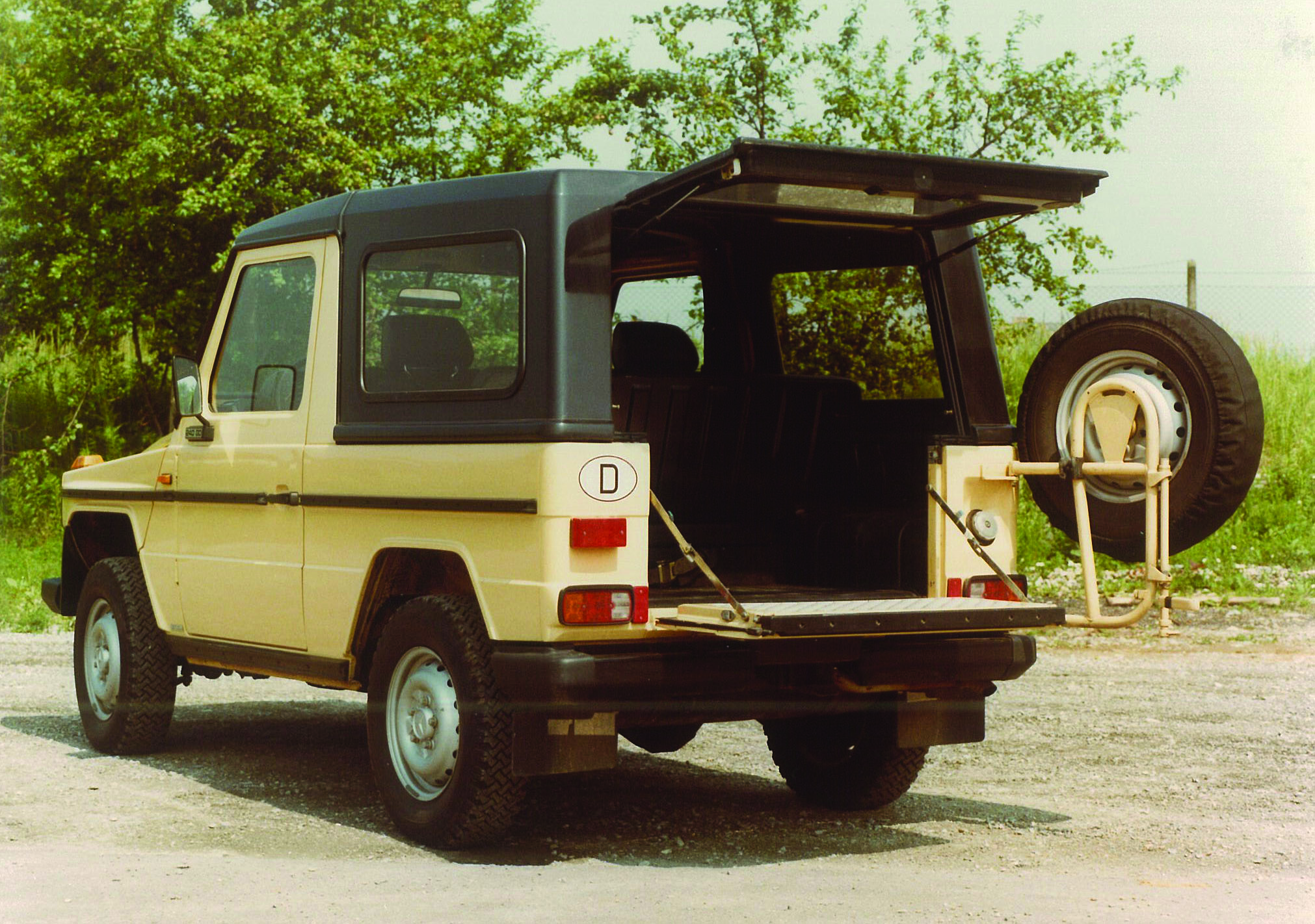 Anfangs gab es zwei Radstandsvarianten, nämlich 2400 und 2850 mm, also einen kurzen und einen langen G. Der Lange ist ausschließlich als Station Wagon lieferbar, bis heute. Den kurzen gab es auch als Station Wagon, und zusätzlich als offenen Geländewagen, vulgo Cabrio genannt. Das Design, so deutsch, eckig, ernst und steif wie eine Kuckucksuhr, stammt von Bruno Sacco. Zunächst trat der G in Konkurrenz zu etablierten Geländewagen aus Japan und den USA.