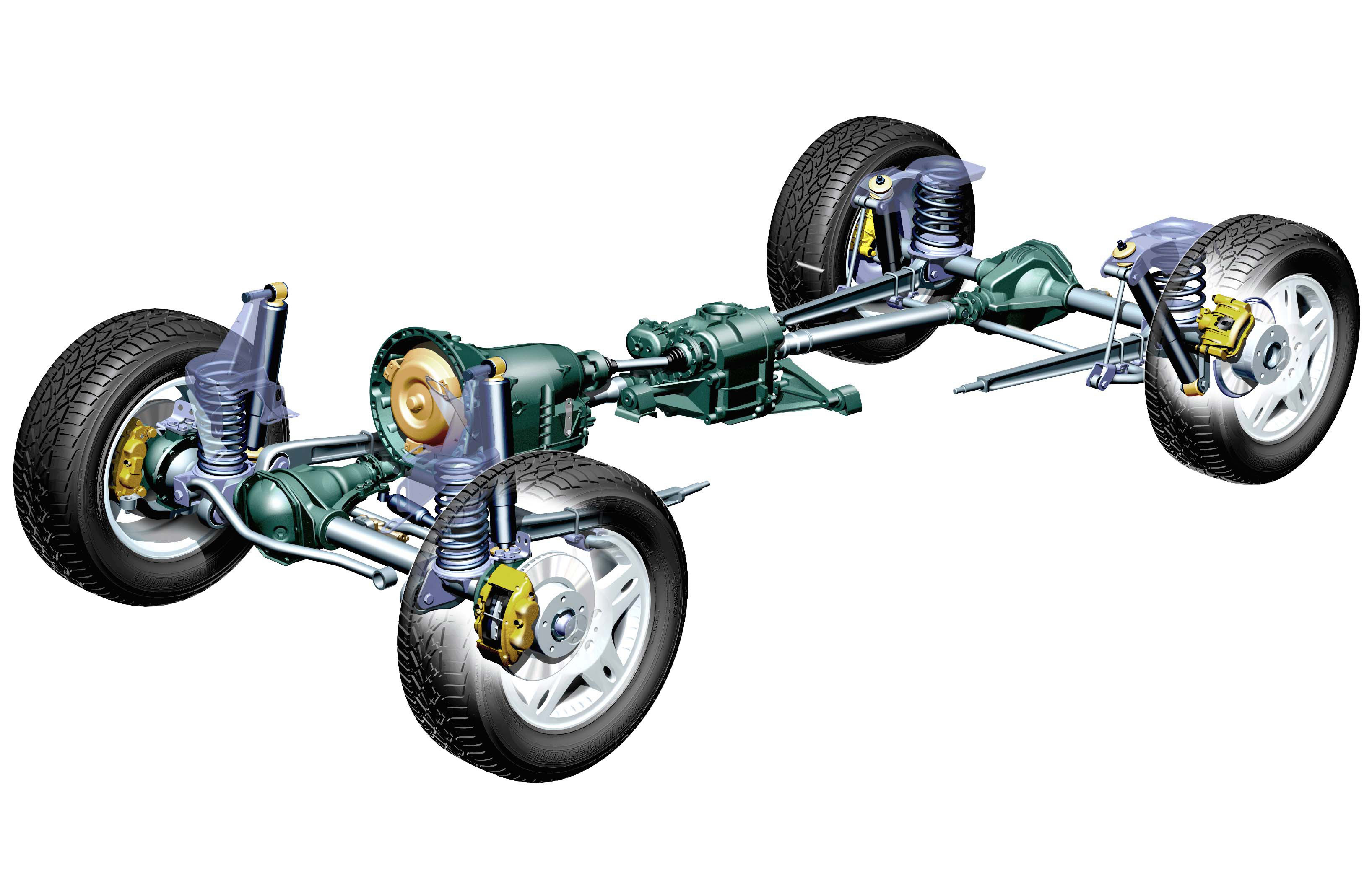 Schema des Antriebsstranges eines 463ers, also bereits mit permanentem Allradantrieb. Bild: Archiv Daimler-Benz