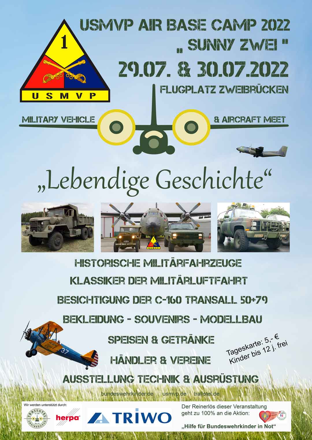 Aber die Zeit bis dahin weiß er mit seiner Transall gut zu nutzen. So dient sie auf dem Flugplatz Zweibrücken der Flugplatzbetreibergesellschaft Triwo AG unter anderem für Enteisungs- und Feuerwehrübungen, konnte bei mehreren Veranstaltungen aber auch zahlreiche Besucher begeistern. Bei diversen Events auf dem Flugplatz wird die C-160 jetzt eingebunden und für Wohltätigkeitsaktionen genutzt. Zahlreiche begeisterte Besucher besichtigten in den letzten Monaten das wenige Meter vom Flughafenzaun abgestellte Flugzeug, wobei eine Spendensumme von über 7.000 Euro für wohltätige Zwecke erzielt wurde. So war die Transall zum Beispiel die Hauptattraktion des Air Base Camps der Vereinigung USMVP (US Military Vehicle Preservation), das im Juli 2022 auf dem ehemaligen Militärflugplatz Zweibrücken veranstaltet wurde. Hier konnten die Besucher auch ins Cockpit einsteigen und die Besitzer von Militärfahrzeugen in den Rumpf der Transall fahren.