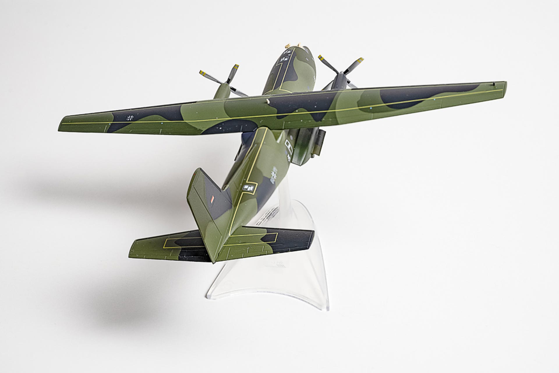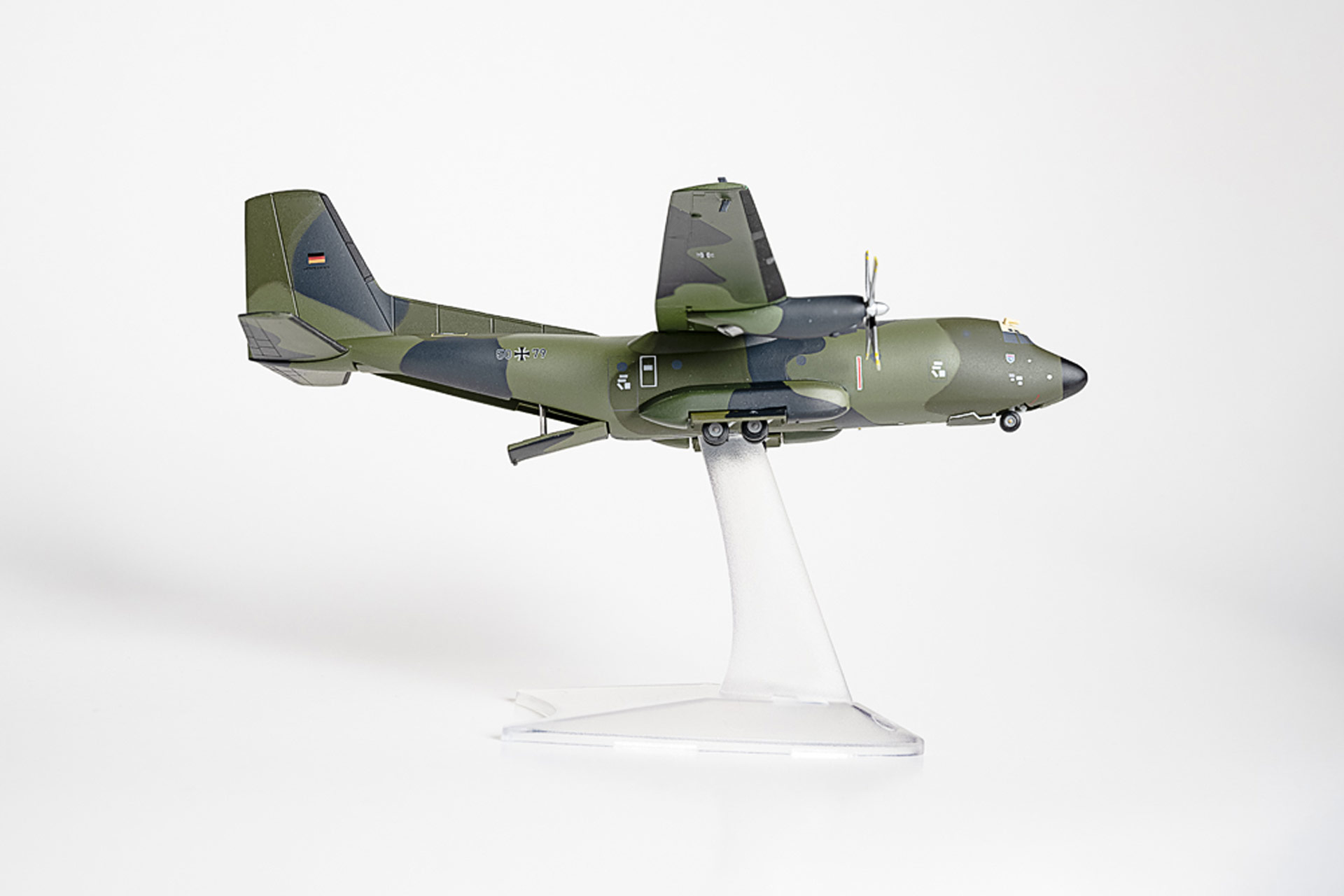 Wem die Zeit der Genehmigungsverfahren bis zur Eröffnung des Trallotes zu lang wird, kann sich schon jetzt das Flugzeug mit nach Hause nehmen. Im Maßstab 1:200 hat Dominik Weil bei Herpa seine Transall als limitiertes Metallmodell fertigen lassen. Mit drehbaren Propellern und Rädern des Hauptfahrwerks sowie einer Laderampe, die geöffnet und geschlossen werden kann, ist das Modell ganz besonders detailreich gestaltet. Selbst der Einstieg mit eingebauter Treppe für die Besatzung ist beweglich. Das Modell ist auf 500 Exemplare limitiert und auf der Box und dem beigelegten Zertifikat nummeriert. Es ist ausschließlich in Weils Trallotel-Shop über www.trallotel.de erhältlich und kostet 119,90 Euro. Auch hier gehen von jedem Modell 10 Euro an die Initiative „Hilfe für Bundeswehrkinder in Not“ (www.bundeswehrkinder.de). Die ersten 300 Besteller bekommen das Flyout-Patch des LTG 63 kostenlos dazu. Und wer das Modell bis zum 31. Dezember 2023 bestellt, erhält eine Chronik über das LTG-63 kostenlos dazu.