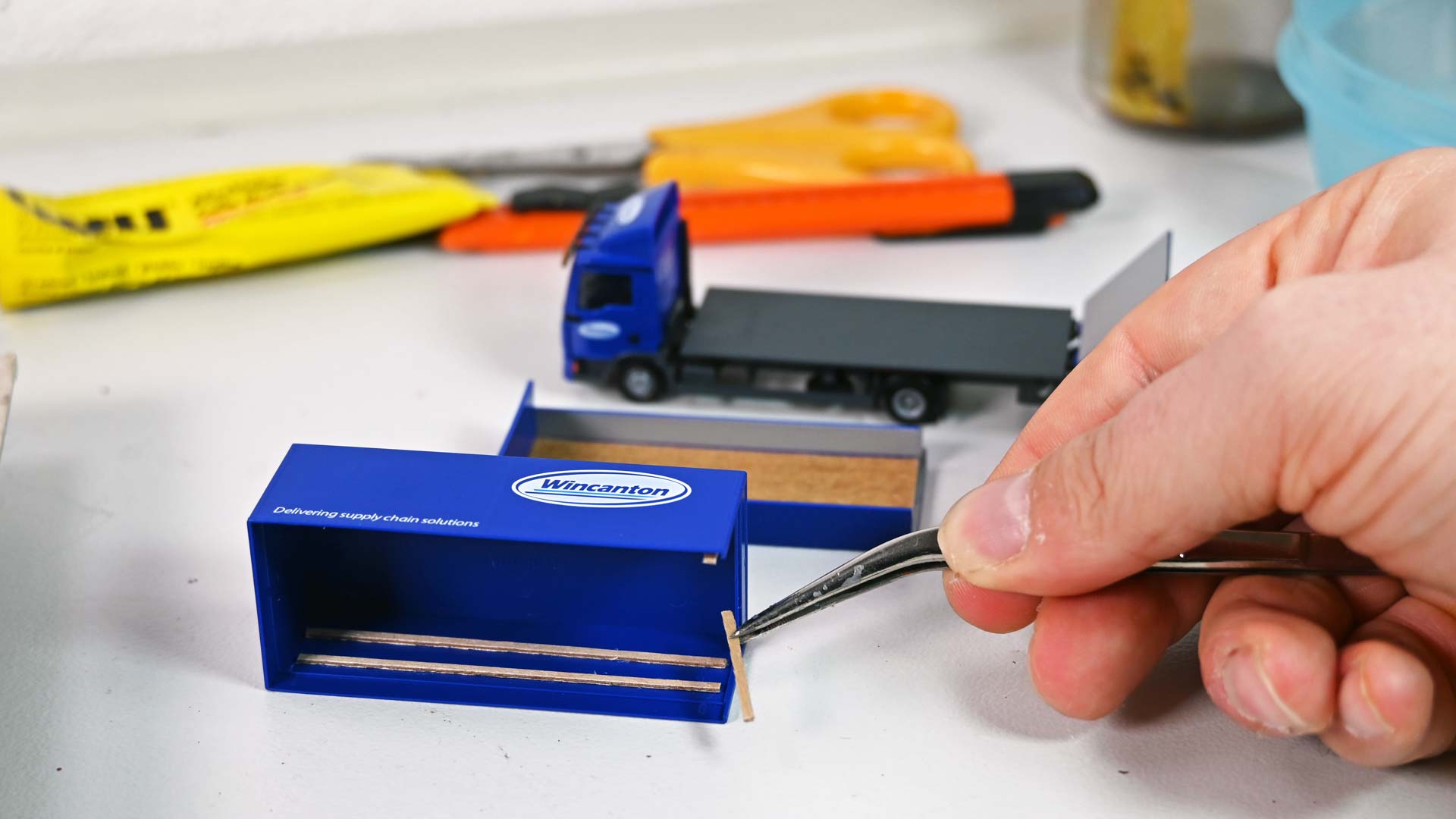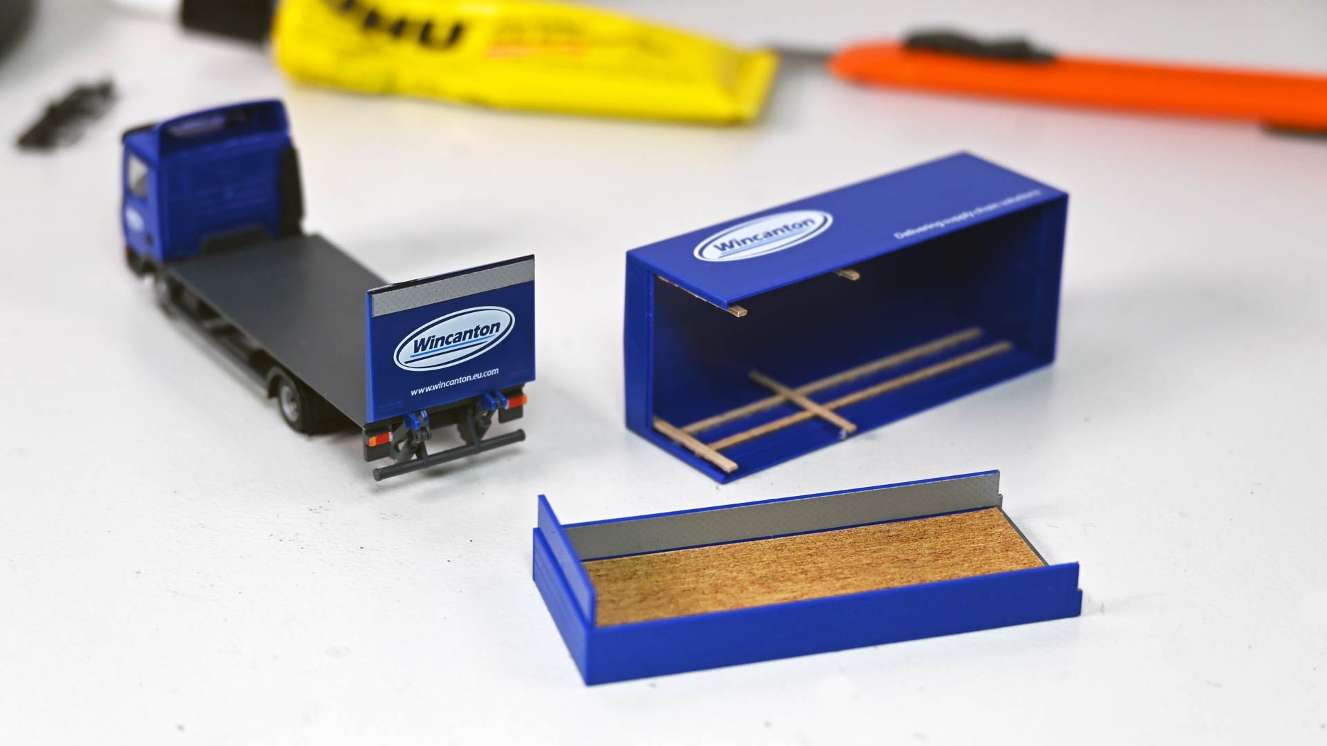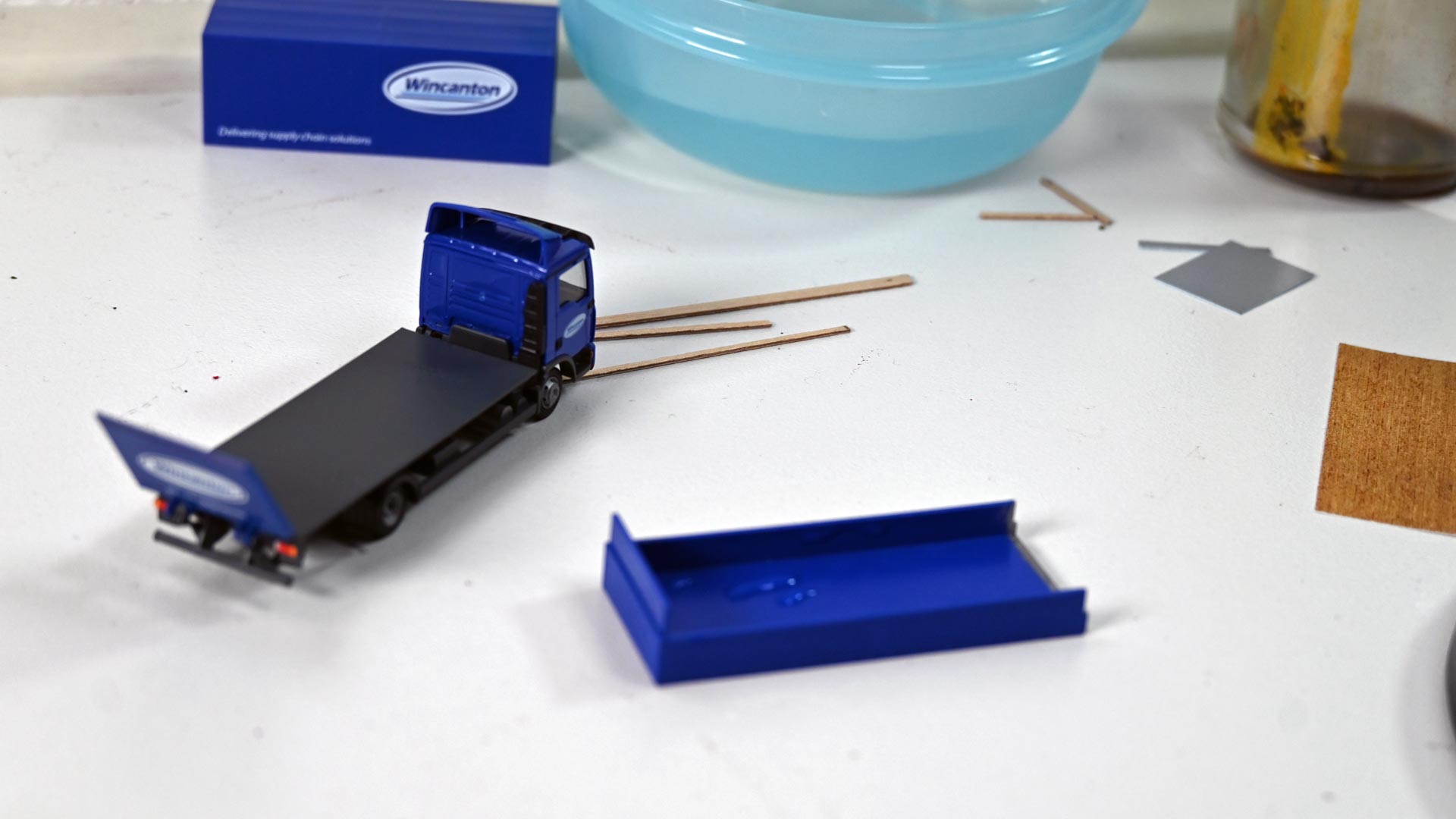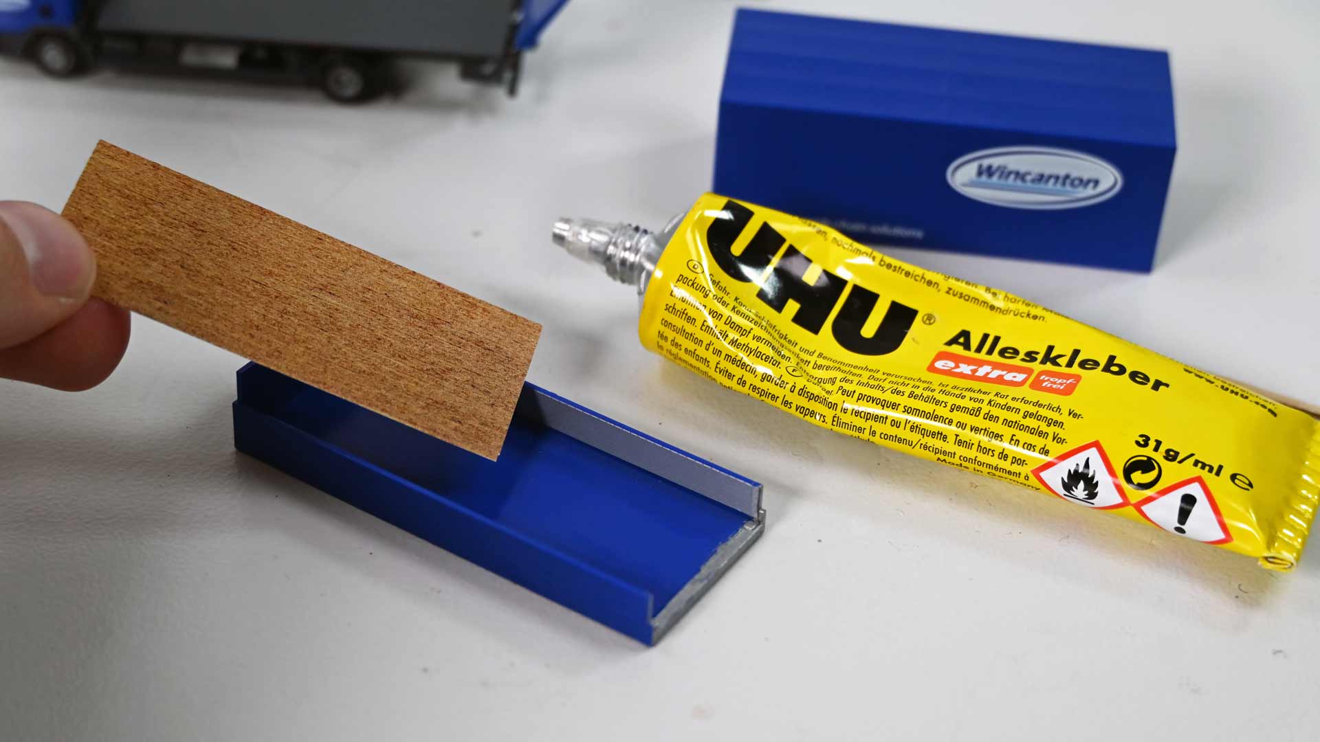 Für die Modellumsetzung benötigt der Bastler zunächst die Nachbildung eines Holzbodens für die Ladefläche sowie Riffelblech für Laderampe und Innenwände. Weitere Details, wie Nassschiebebilder mit aktuellen Kfz-Kennzeichen und Farben, um Details wie Rücklichten und Blinker hervorzuheben, komplettieren die Materialiste.