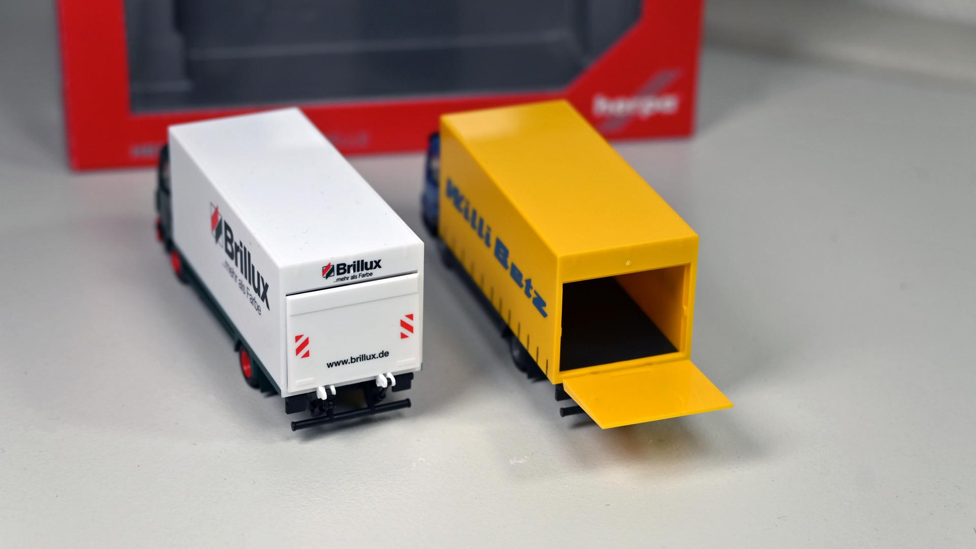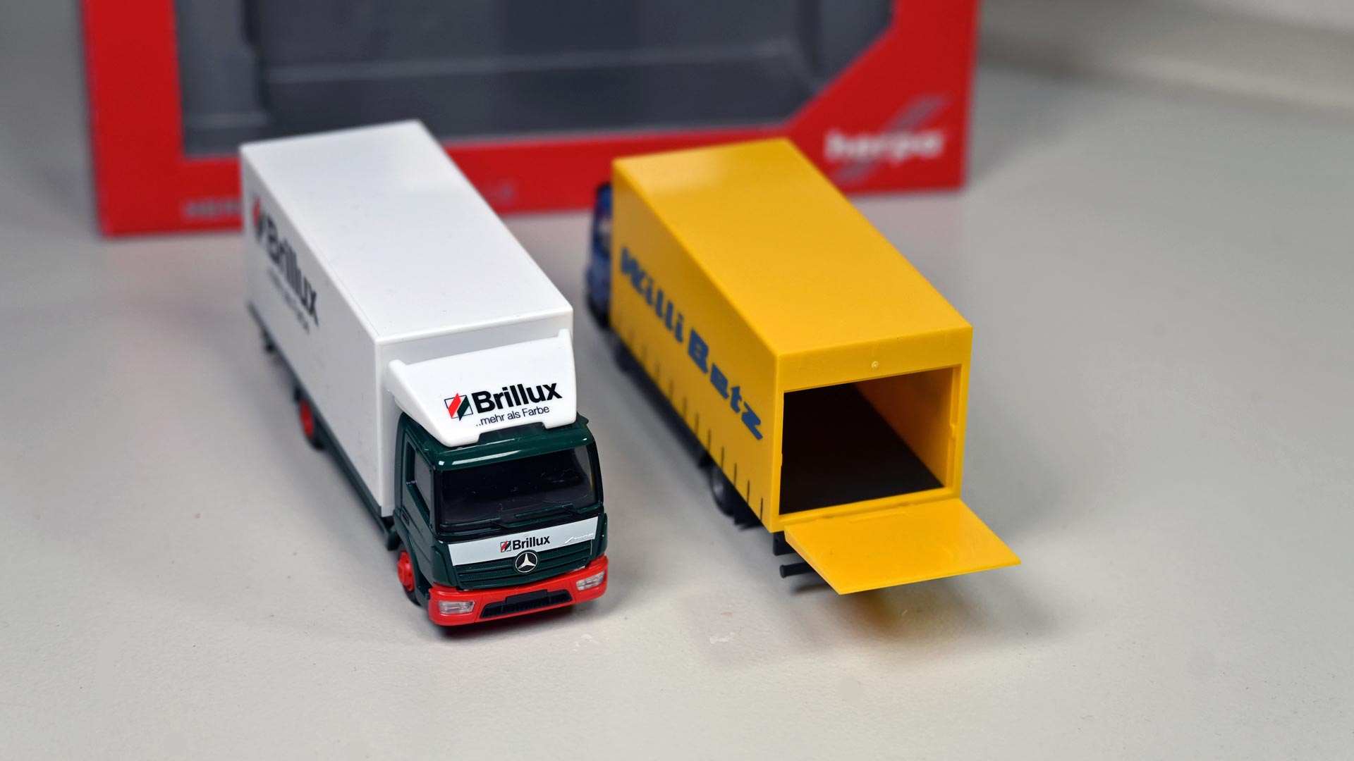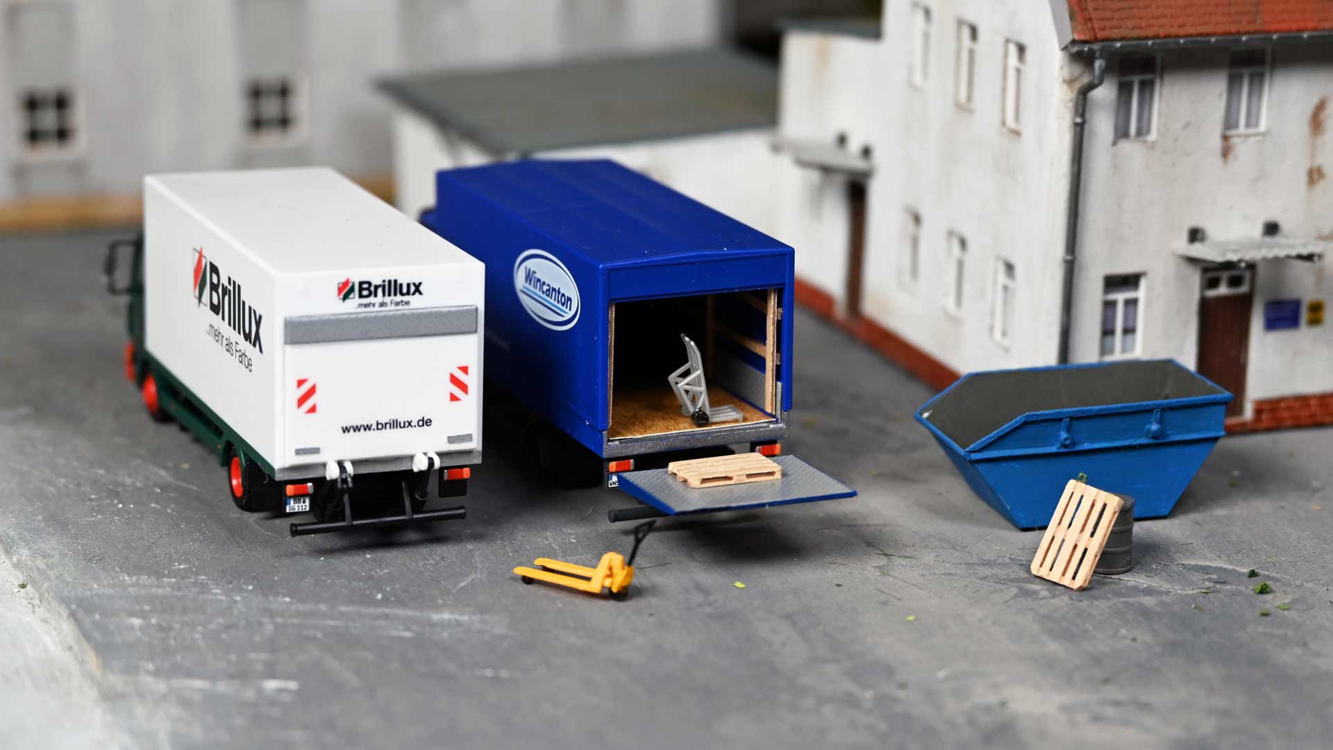 Seit 2004 gibt es im Herpa-Sortiment Koffer-Lkw mit beweglicher Ladebordwand. Nicht nur für Modellbahner lassen sich durch dieses Feature interessante Ladeszenen nachstellen. Die Wirkung der filigranen beweglichen Rampen lässt sich mit wenigen Handgriffen und einfachsten Mitteln noch weiter steigern.