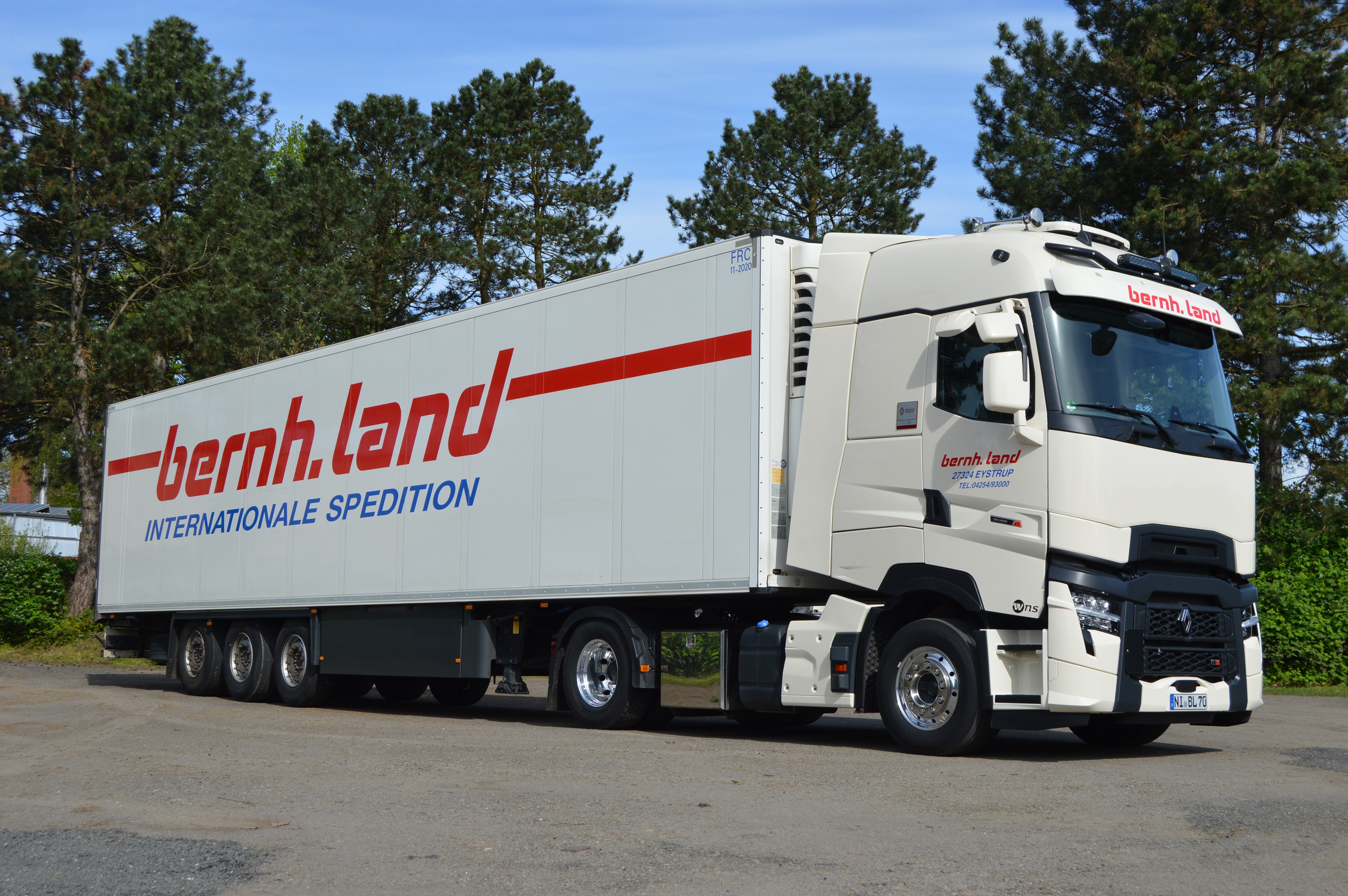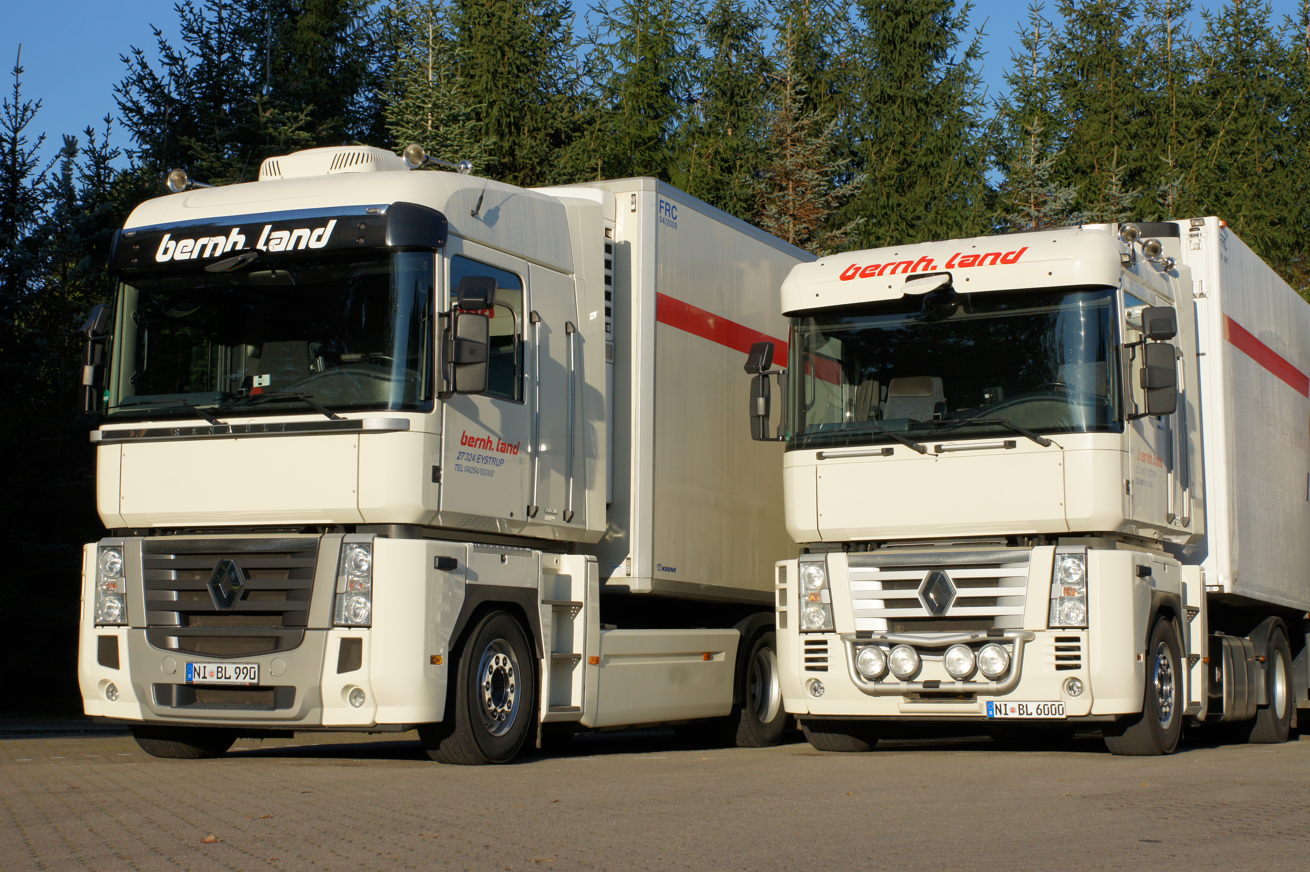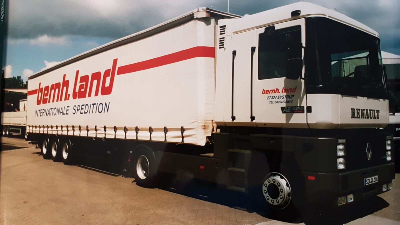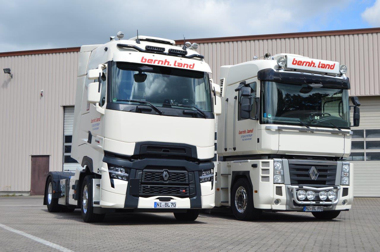 Natürlich wurden im Laufe der Zeit auch Renault Magnums in der Speditionsfarbe „RAL 1013 perlweiß“ beschafft. Insgesamt kann man sagen, bildeten die Renault Magnums immer die „Spitze“ des Fuhrparks, denn in der Masse sind und waren weiterhin MAN Zugmaschinen zahlreich vertreten. Gleichwohl gesellten sich im Laufe der Zeit sogar einige Renault Premium Fahrzeuge hinzu. Bernhard Land Senior, wie auch heute Holger Land, lassen es sich nicht nehmen, die letzten beiden im Fuhrpark verbliebenen Renault Magnums hauptsächlich selbst zu pilotieren.