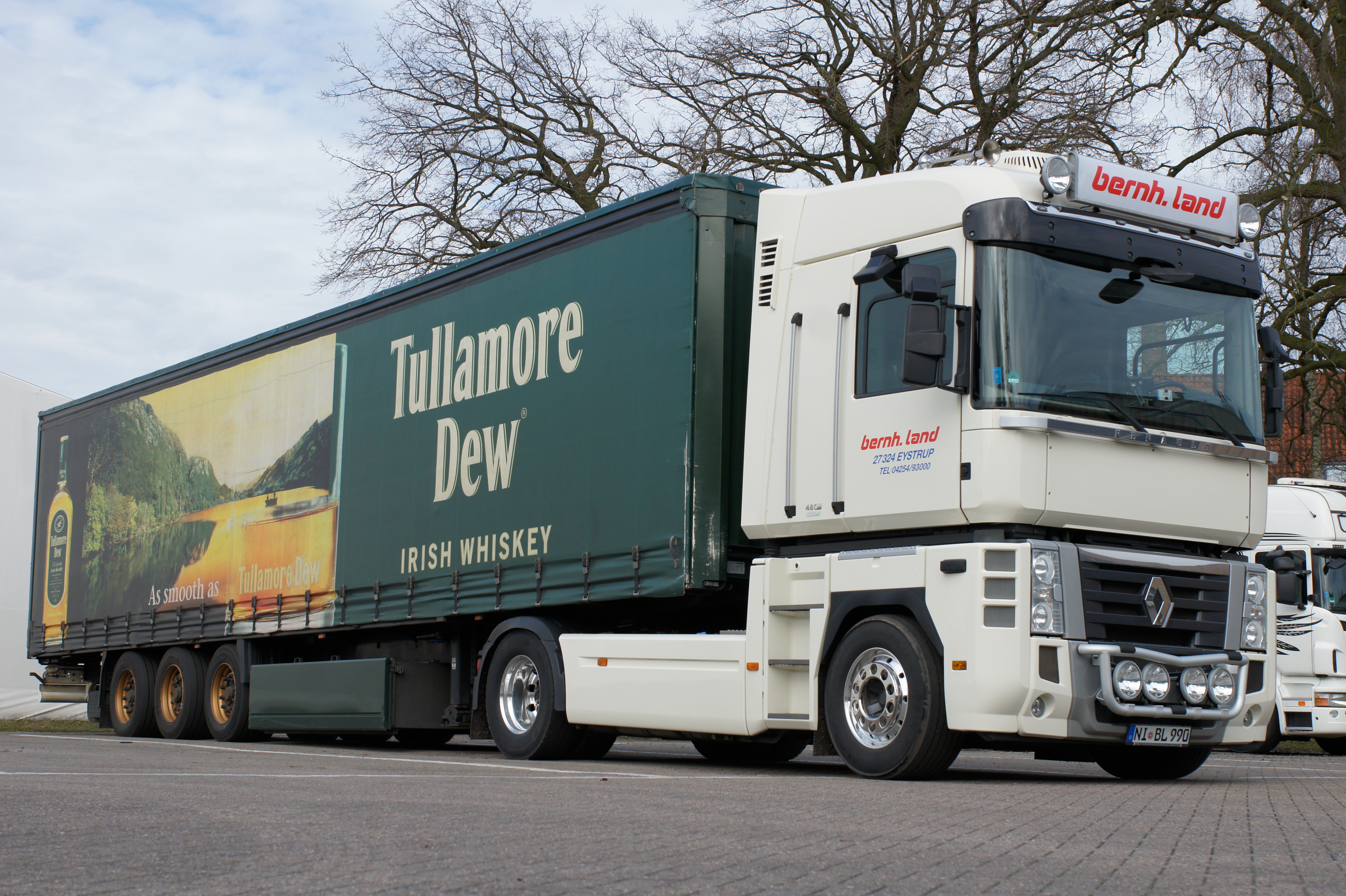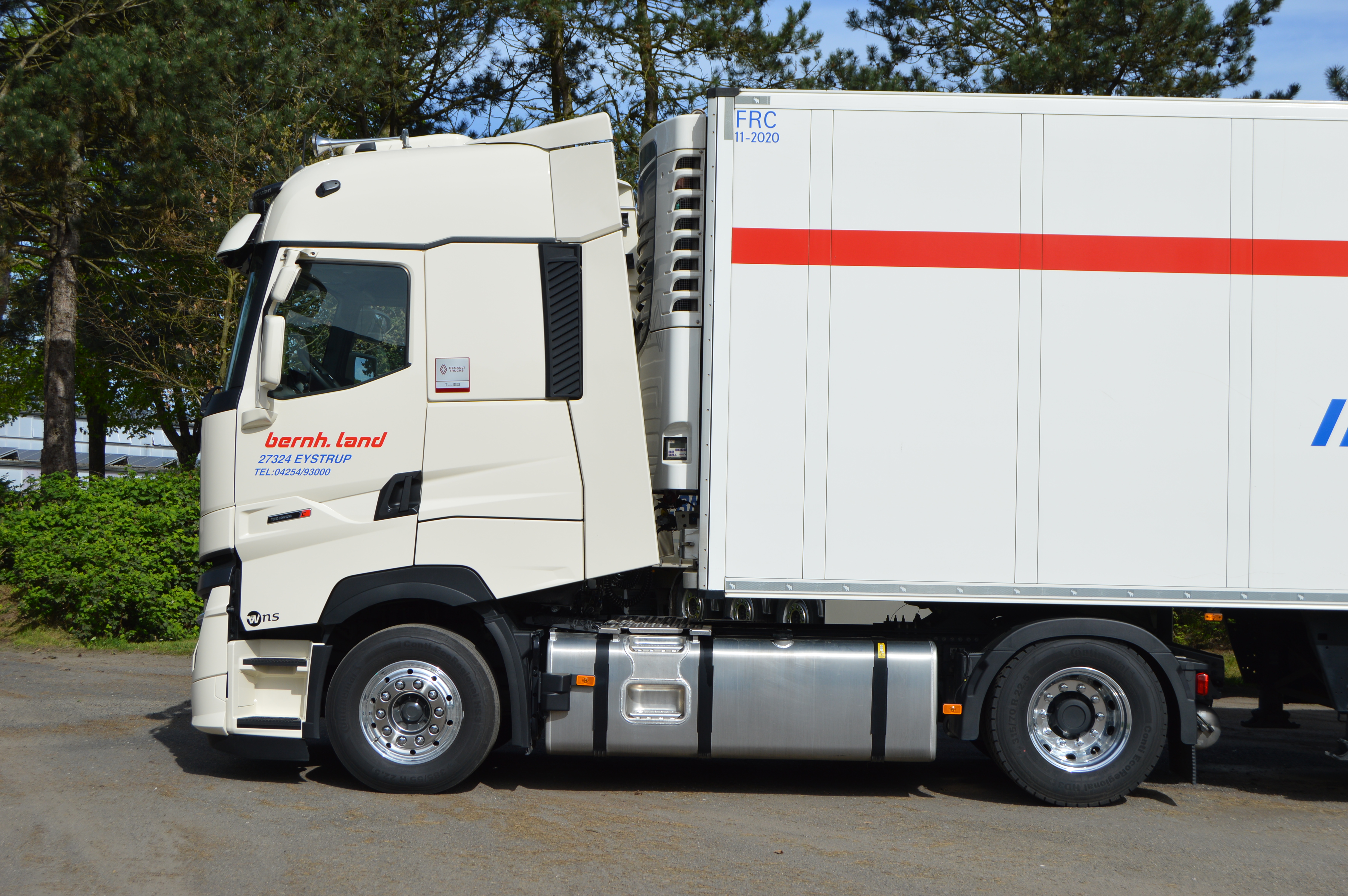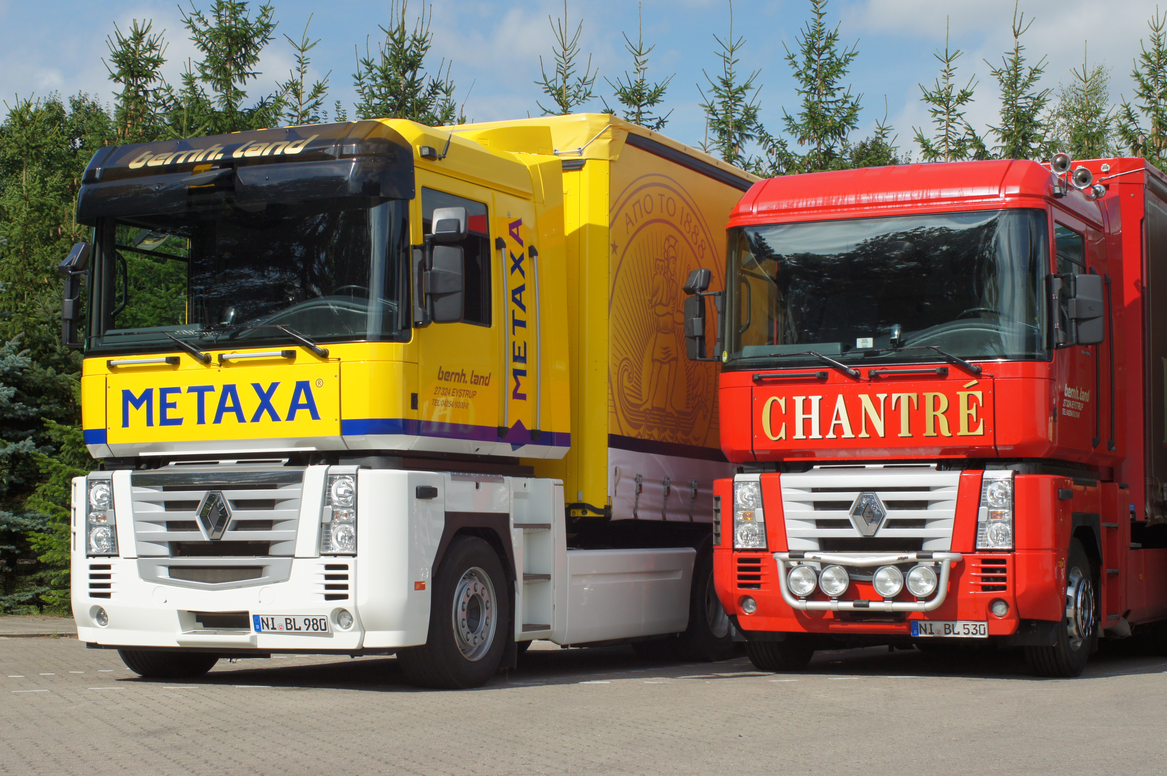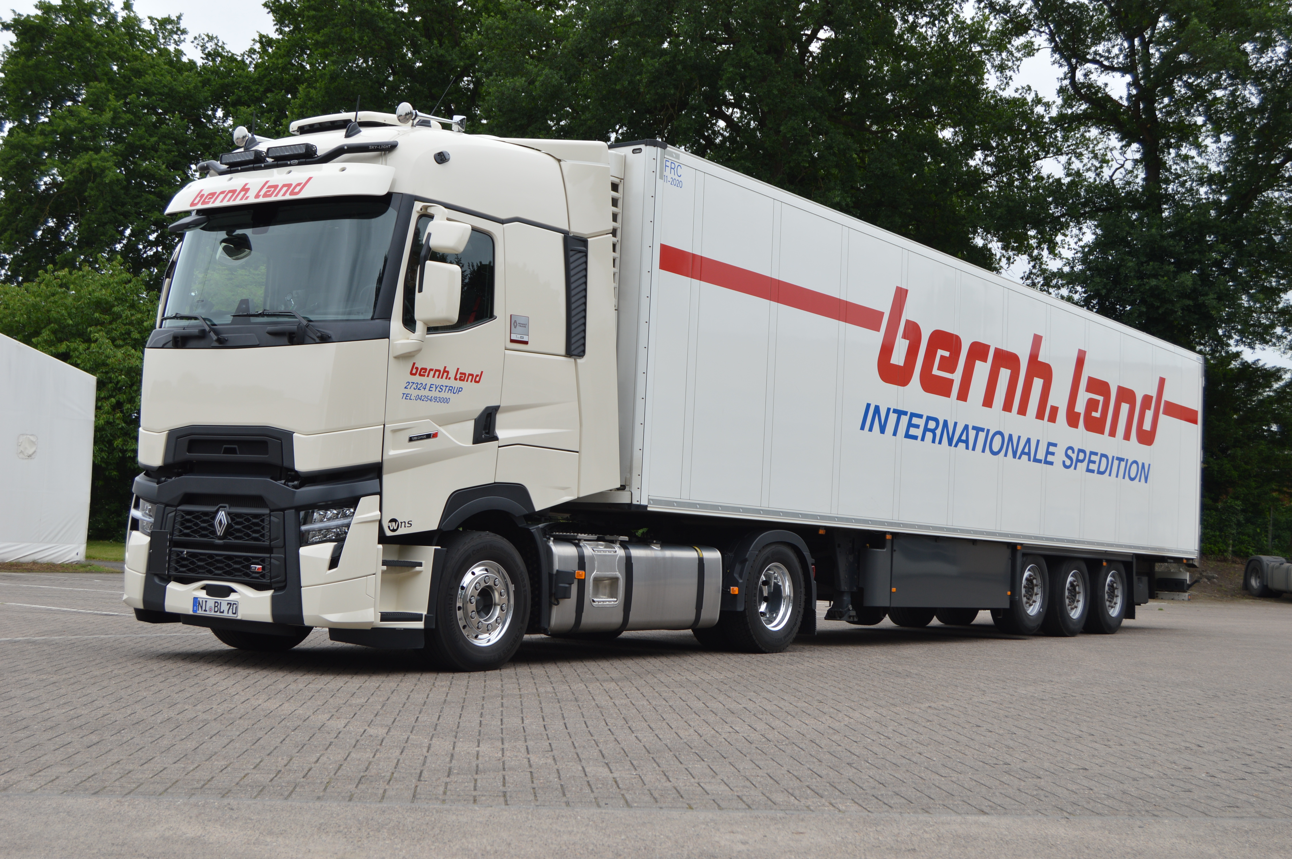 Natürlich wurden im Laufe der Zeit auch Renault Magnums in der Speditionsfarbe „RAL 1013 perlweiß“ beschafft. Insgesamt kann man sagen, bildeten die Renault Magnums immer die „Spitze“ des Fuhrparks, denn in der Masse sind und waren weiterhin MAN Zugmaschinen zahlreich vertreten. Gleichwohl gesellten sich im Laufe der Zeit sogar einige Renault Premium Fahrzeuge hinzu. Bernhard Land Senior, wie auch heute Holger Land, lassen es sich nicht nehmen, die letzten beiden im Fuhrpark verbliebenen Renault Magnums hauptsächlich selbst zu pilotieren.