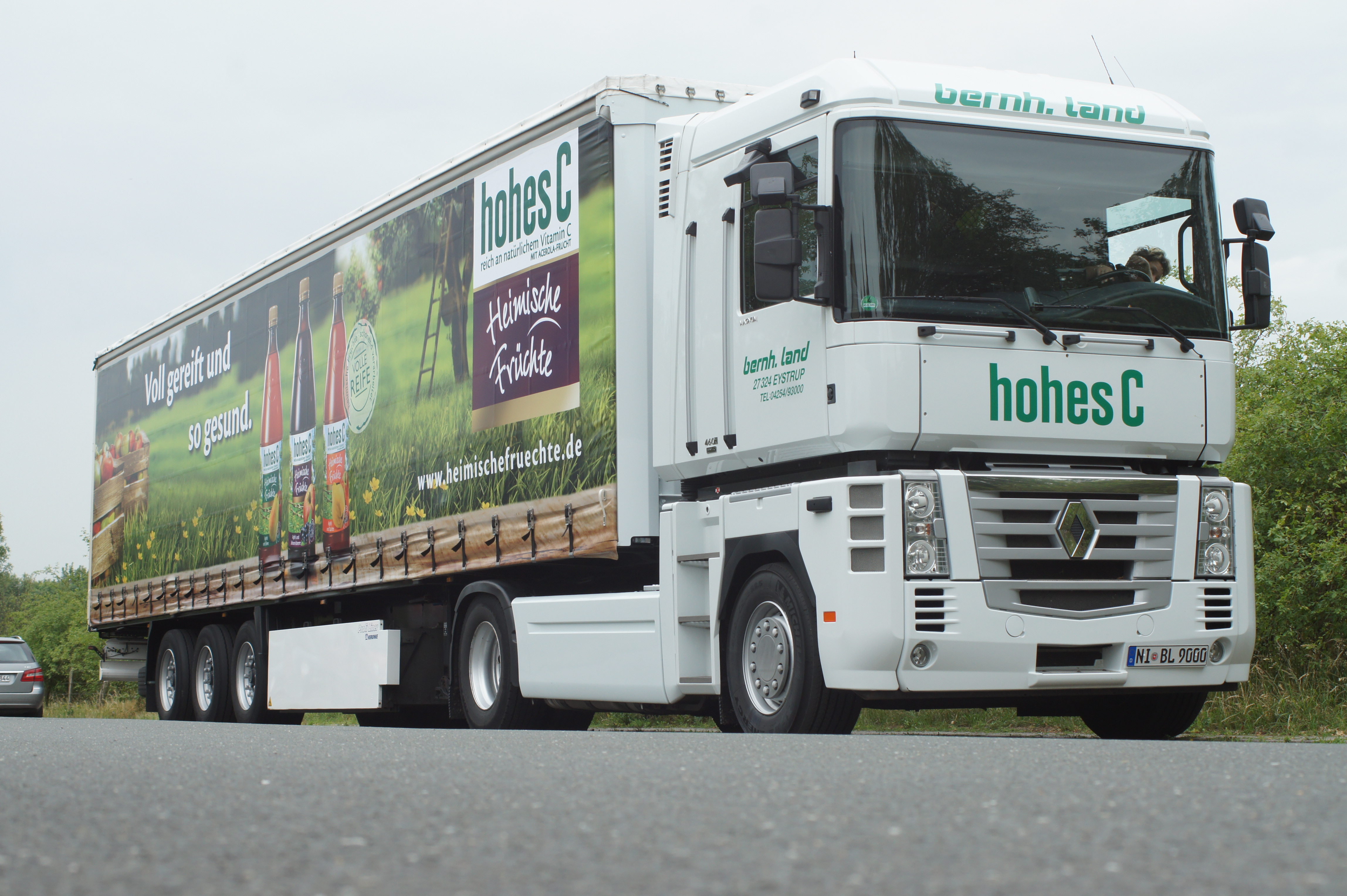 8. Renault Magnum „hohes C – Heimische Früchte“ Gardinenplanen-Auflieger