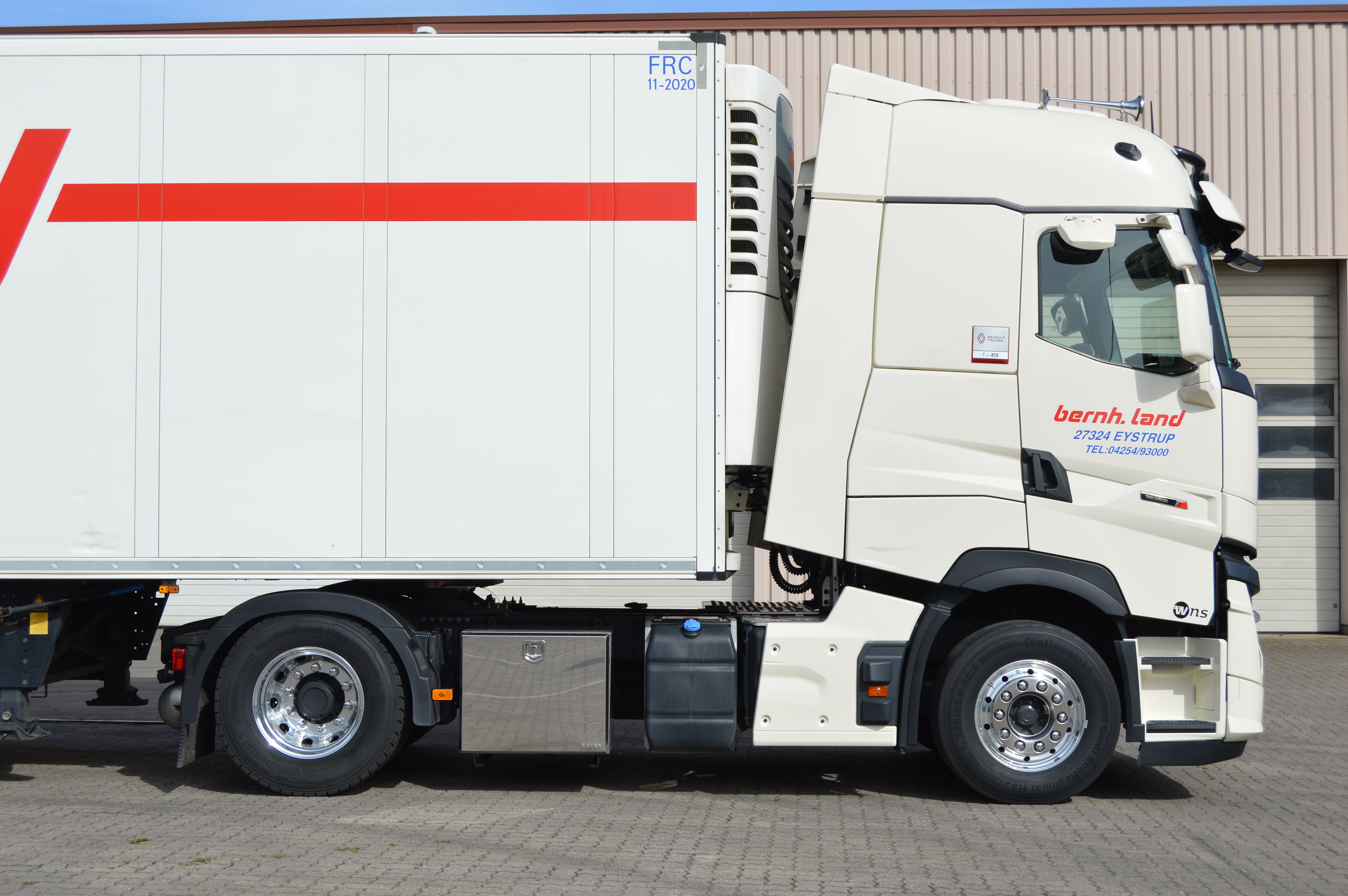 7. Renault Magnum ´08, perlweiß Hausfarben, „Spedition B. Land“ Kühlkoffer-Auflieger