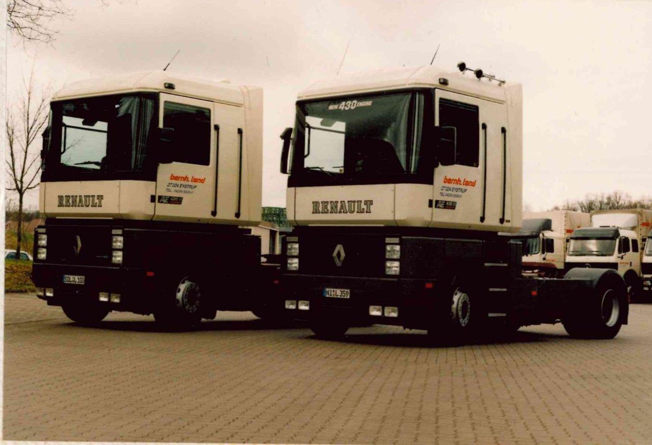 Speditionsgründer Bernhard Land hatte schon früh ein Faible für Lkw der Marke Renault. Sein Interesse war erstmals bei der Marktvorstellung des neuen „Renault AE“ geweckt. Für damalige Verhältnisse war der „AE“ nicht nur optisch eine kleine Revolution, er war vielmehr aus Sicht des Fahrers ein echtes Raumwunder.