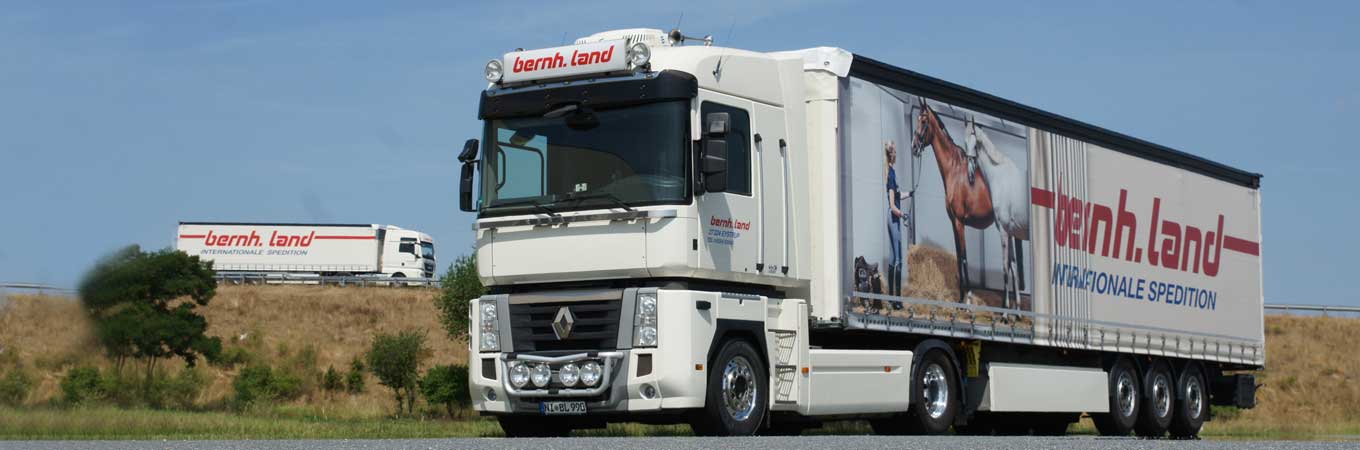 Es dauerte zudem nicht lange, und schon war auch der erste Renault Werbetruck bei Land geboren. Bernhard Land Senior pflegte sehr gute Kontakte nicht nur zu den Logistikern seiner Kunden, sondern auch direkt in die Marketingabteilungen. Das Besondere der Land Werbetrucks war und ist, dass die Zugmaschine – wie auch der Auflieger – immer farbig lackiert wird und zwar jeweils in der Markenfarbe deren Werbung er auf der Gardinenplane trägt. Mit Erscheinen des Nachfolgers des Renault AE, dem „Renault Magnum“ wurden bei Land weitere Werbetrucks realisiert. Bernhard Land meinte, dass die beeindruckende Erscheinung der Magnums für solche Anlässe geradezu prädestiniert sei.