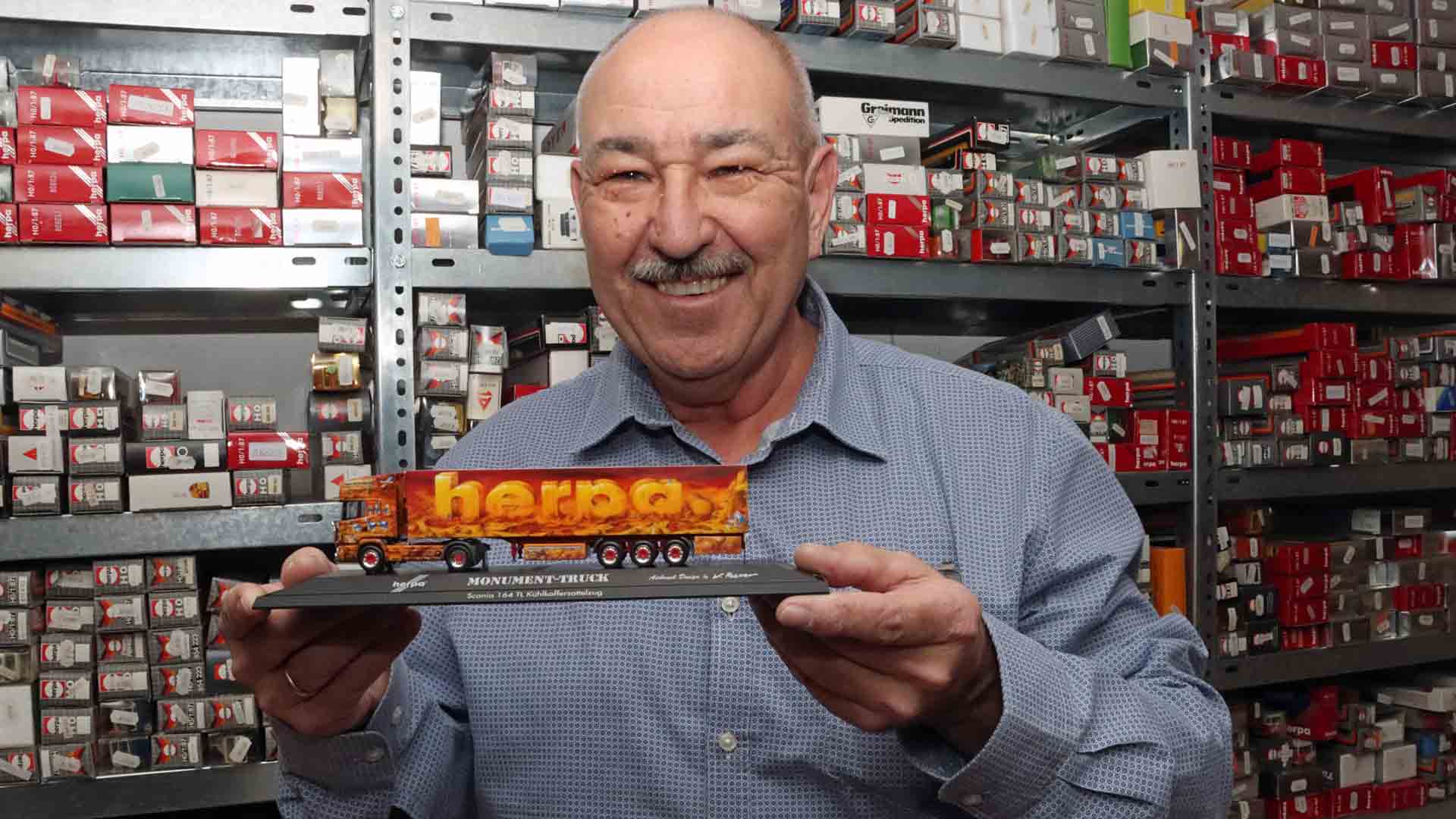 Im exakten Maßstab 1:87 gibt es in den 1970er Jahren fast keine Modellfahrzeuge, so entsteht 1976 die Idee, hochwertige Modelle für die Modelleisenbahn anzubieten. Bereits zwei Jahre später werden die ersten fünf Pkw-Modelle auf der Spielwarenmesse in Nürnberg vorgestellt und sind auf Anhieb ein großer Erfolg, 1980 erscheinen die ersten drei Lkw-Modelle. Von Anfang an setzt Herpa auf Qualität und Detailtreue. Außenspiegel werden „angegossen“, Scheibenwischer und Innenrückspiegel in die Frontscheibe graviert. Damit entstehen bei Herpa zwei neue Abteilungen: Konstruktion und Formenbau. Herpa konstruiert Modelle und die eigenen Werkzeuge. Anfangs werden aufwendig Holzformen im Maßstab 1:10 angefertigt, mit einer Kopierfräse entstehen so die Spritzwerkzeuge für die Modelle im Maßstab 1:87. Übrigens: die ersten sechs Holzmodelle werden günstig von Schuco übernommen, danach entstehen eigene. Ab 1988 bekommt Herpa meist die Originaldaten der Fahrzeugindustrie, und mit CAD-Technologie entstehen seitdem die Modelle noch detaillierter. Haben die ersten Lkw noch rund 15 Teile, bestehen sie heute aus über 40. „Herpa hat in vielerlei Hinsicht Maßstäbe gesetzt“, erklärt Produktmanager Stefan Blank. „Erstmals gibt es Modelle in Metalliclackierungen, außerdem werden die Fahrzeuge aufwendig bedruckt und nicht nur beklebt. Kühlergrill und andere Chromteile sind Dank Prägetechnik auch im Modell verchromt.“