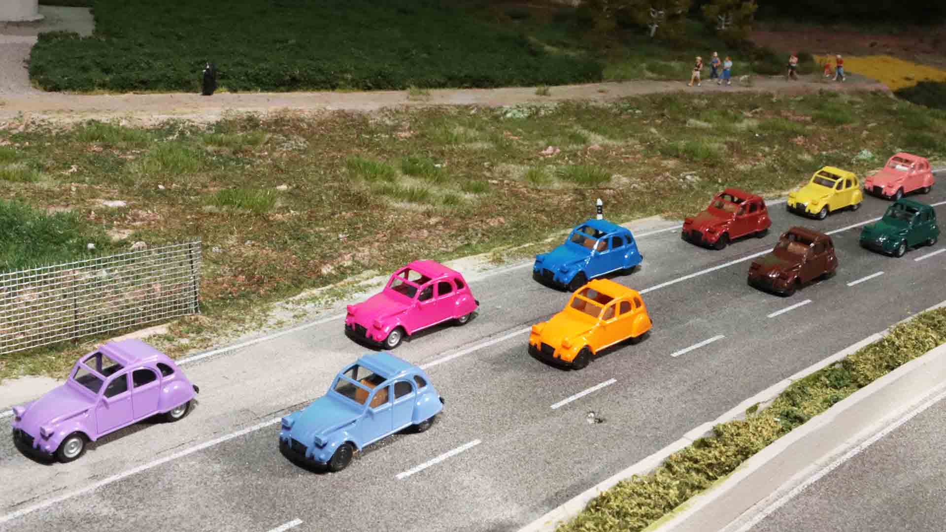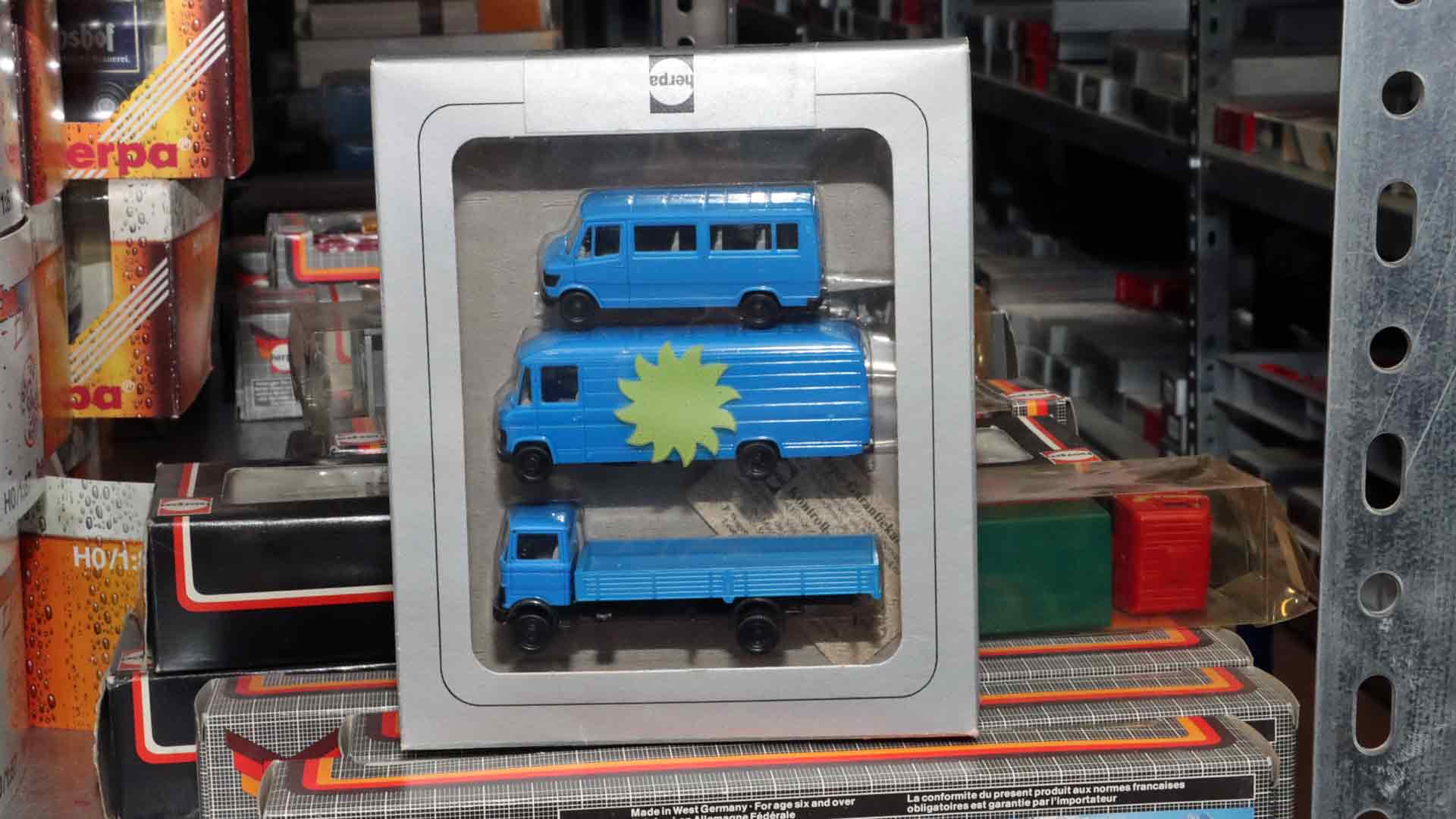 Heute erscheinen sechs Mal im Jahr jeweils 60-70 neue Modelle. Übrigens: Das meistverkaufte Pkw-Modell ist eines der ersten überhaupt: die Ente von Citroen mit weit über ½ Million Exemplaren in den verschiedensten Variationen. Auch der Trabi erscheint in vielen Abwandlungen insgesamt in einer sehr großen Auflage. Die sogenannte „Sonnenkarawane“ ist der größte Einzelauftrag. Das ist eine Packung mit drei hellblauen Mercedes Kleintransportern. 300.000 Stück werden 1984 innerhalb von nur zwei Wochen versendet.